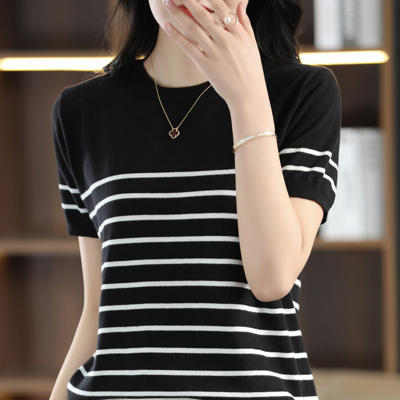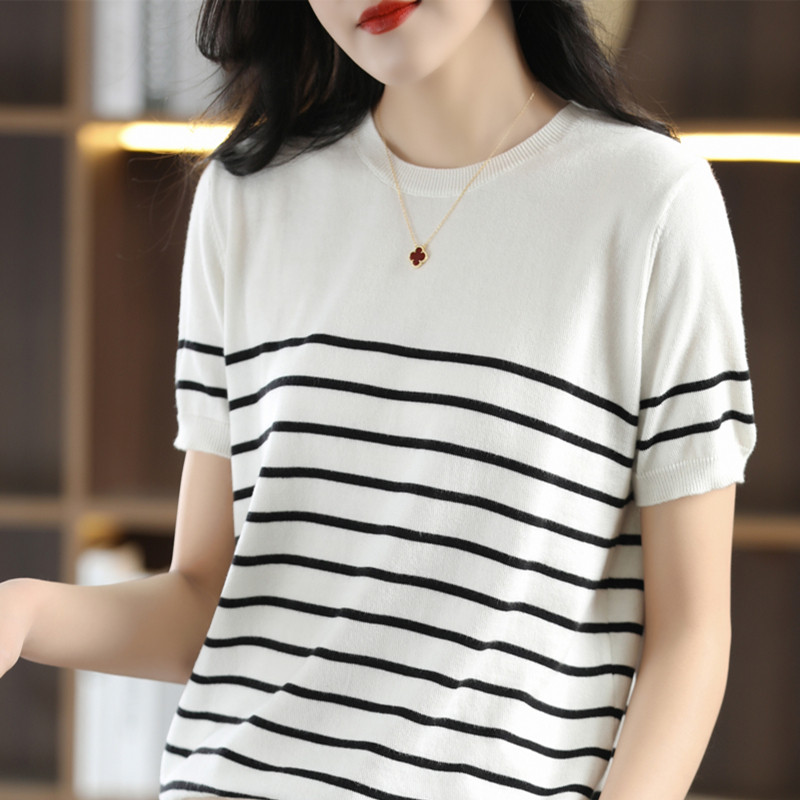 100 % cotton wire knitted short sleeve t shirt with loose round collar blouse blouse for 2022 new summer
