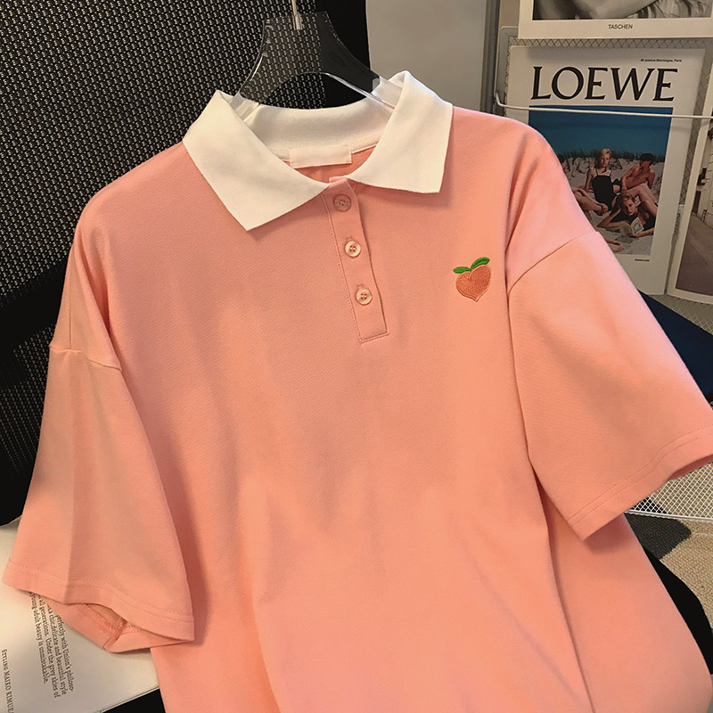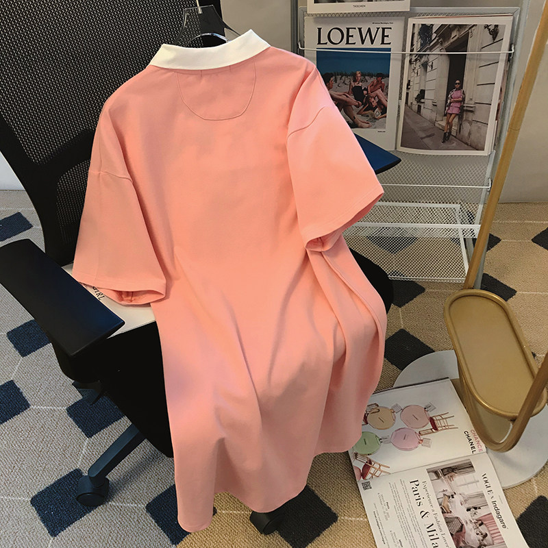 Small C new product hit color POLO collar dress women's mid-length 2022 summer loose college style short-sleeved top