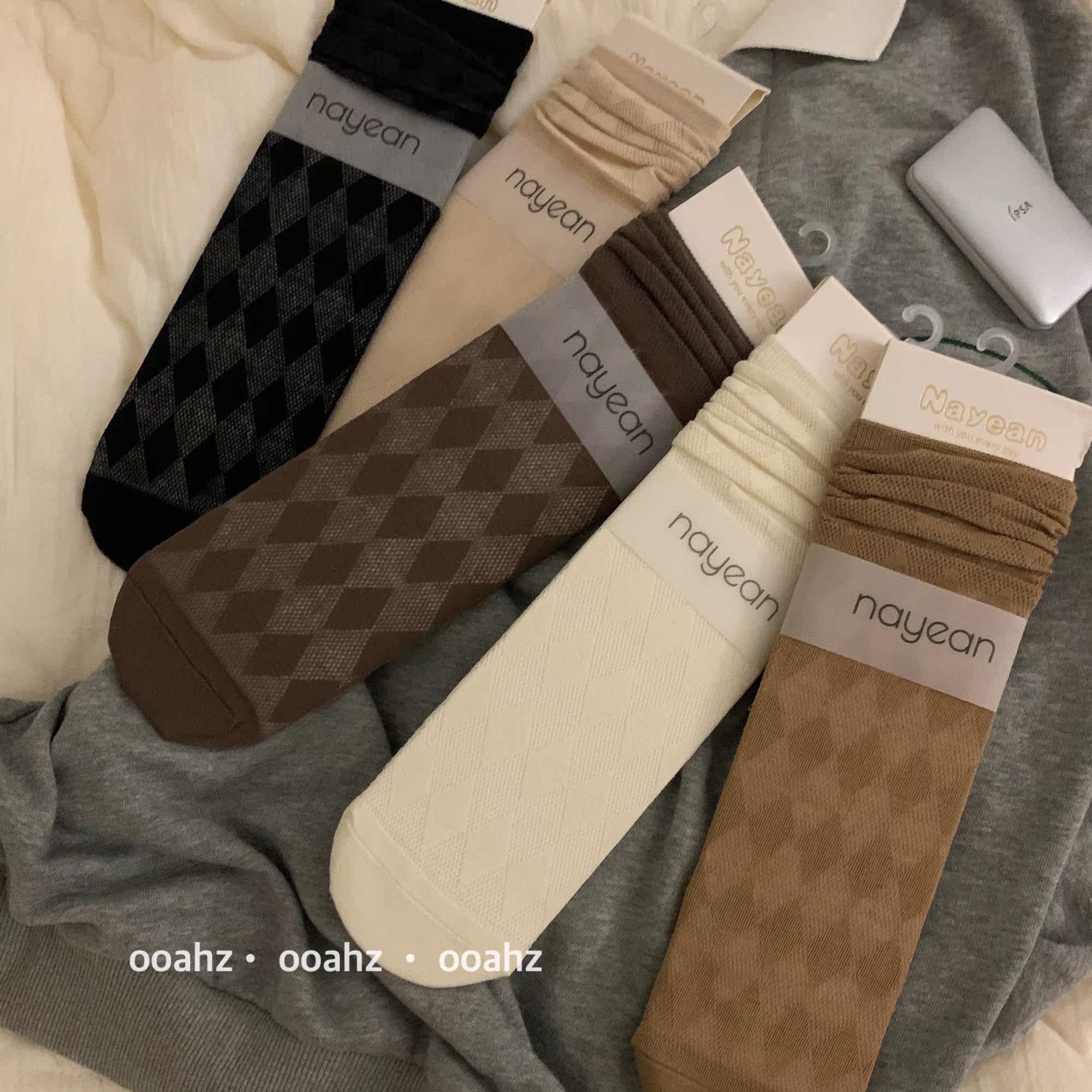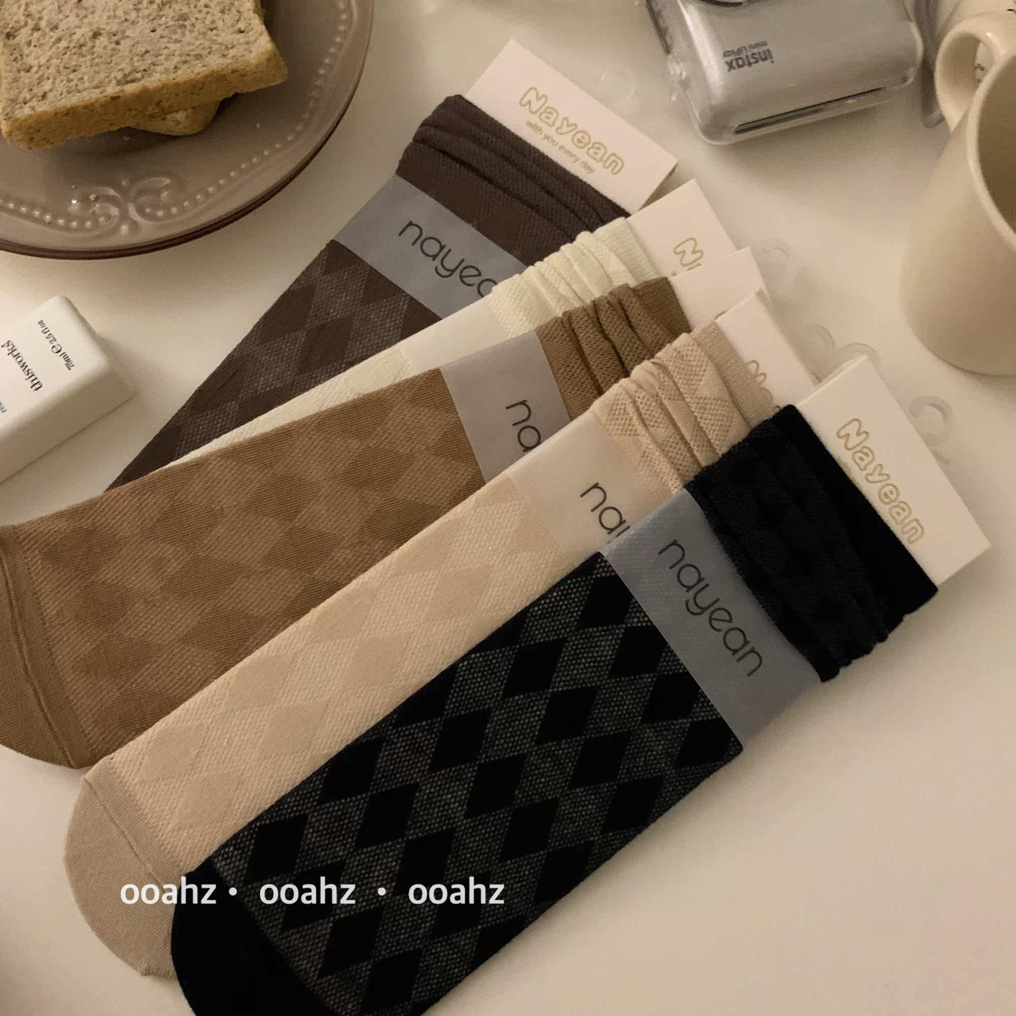 (Moderate Baking) Cafe Department Asymptoid Rhomboid Mesh Breathable Summer Thin Socks Woman Midbarrel Socks Long Socks