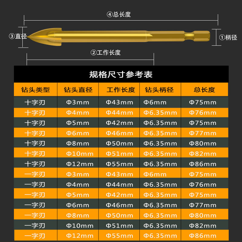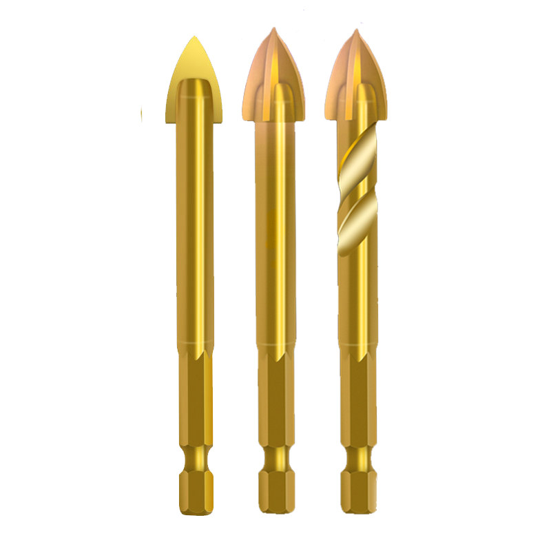 Extended threaded hexagonal handle cross alloy drill tile drill super hard concrete multi-functional set wall punching