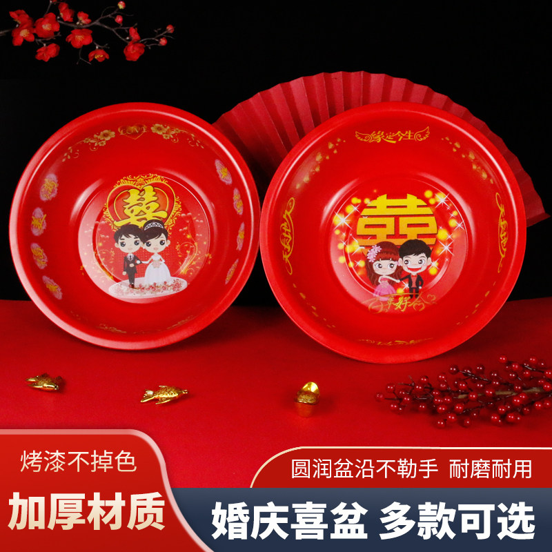 Washbasin wedding dowry a pair of red washbasin thickened stainless steel bride dowry items festive supplies Daquan