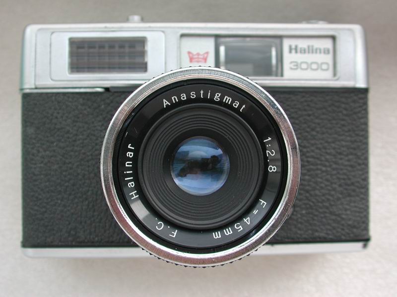HK-produced Halina 3000 side axle camera with outer package and original distribution brochure