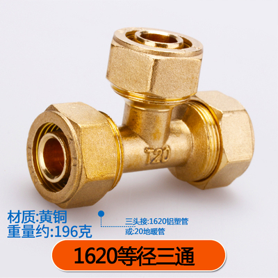 1620 Sun pipe joint 6 - min hot water pipe floor heating pipe special copper joint aluminum plastic pipe inner wire three - pass valve