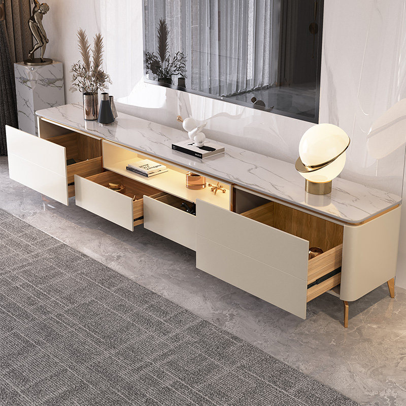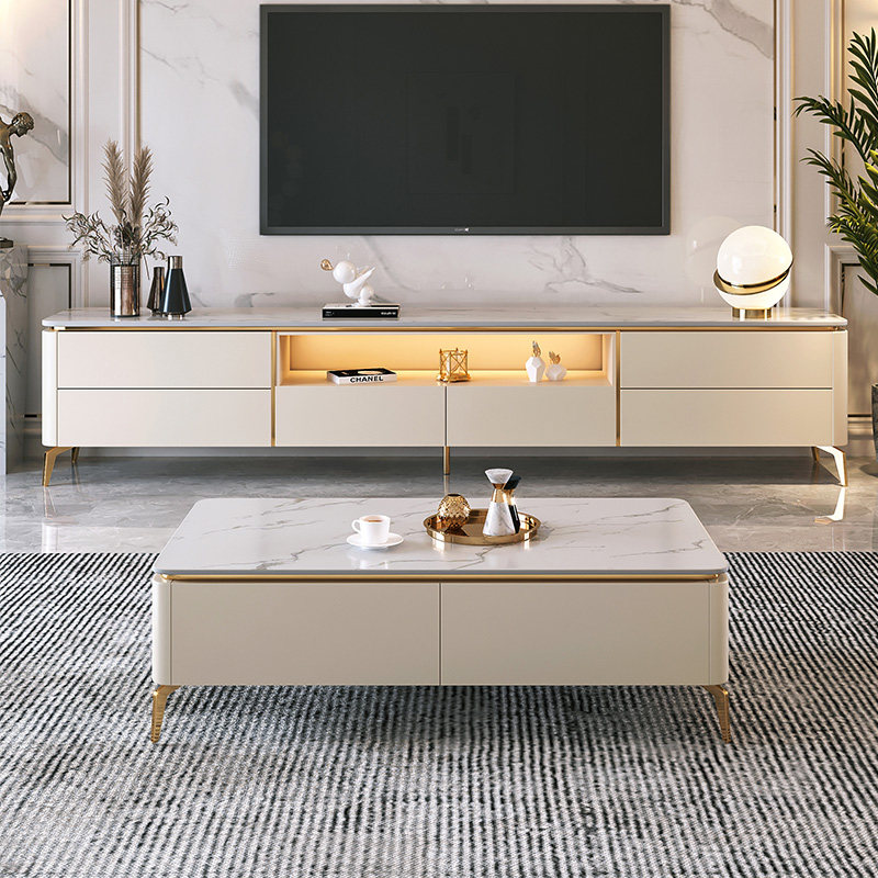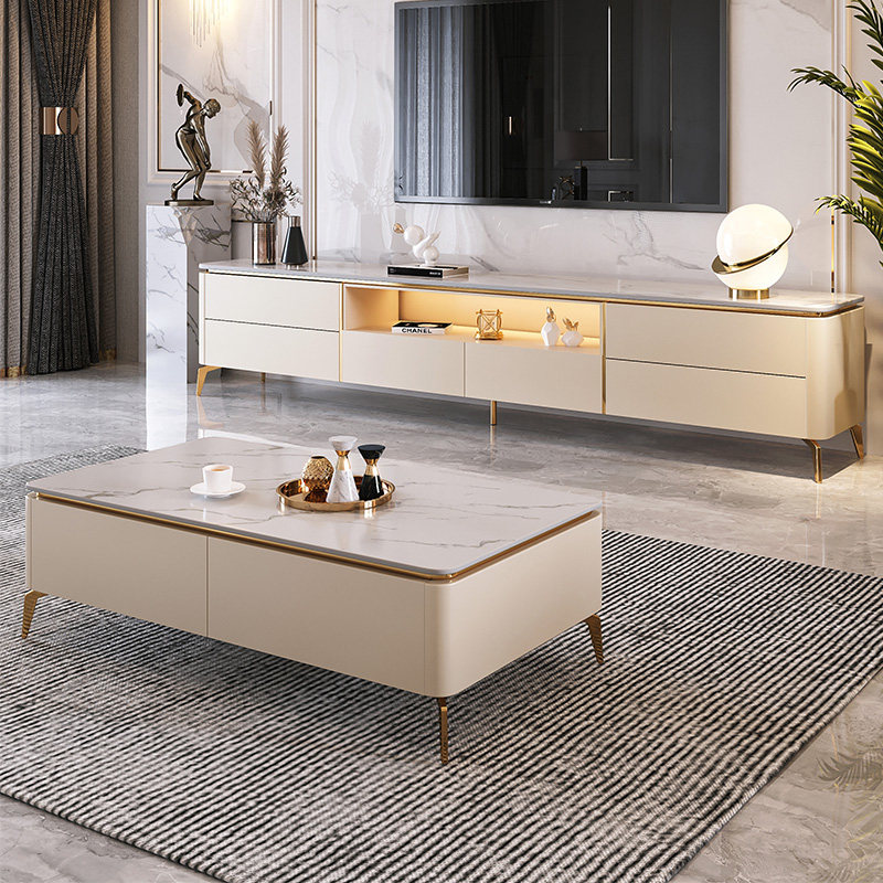 Light luxury coffee table TV cabinet combination simple modern living room bedroom new cream style high foot rock board TV cabinet