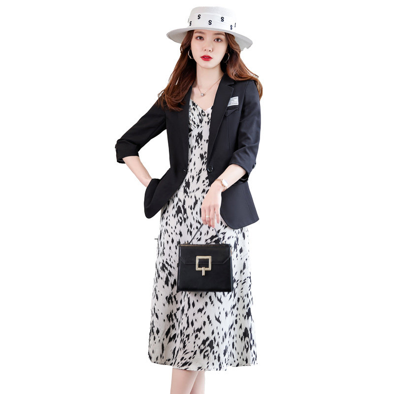 Black Suit Woman Short Middle Sleeve Small Subblouse 2022 Summer New Casual Career Thin Western Suit Jacket