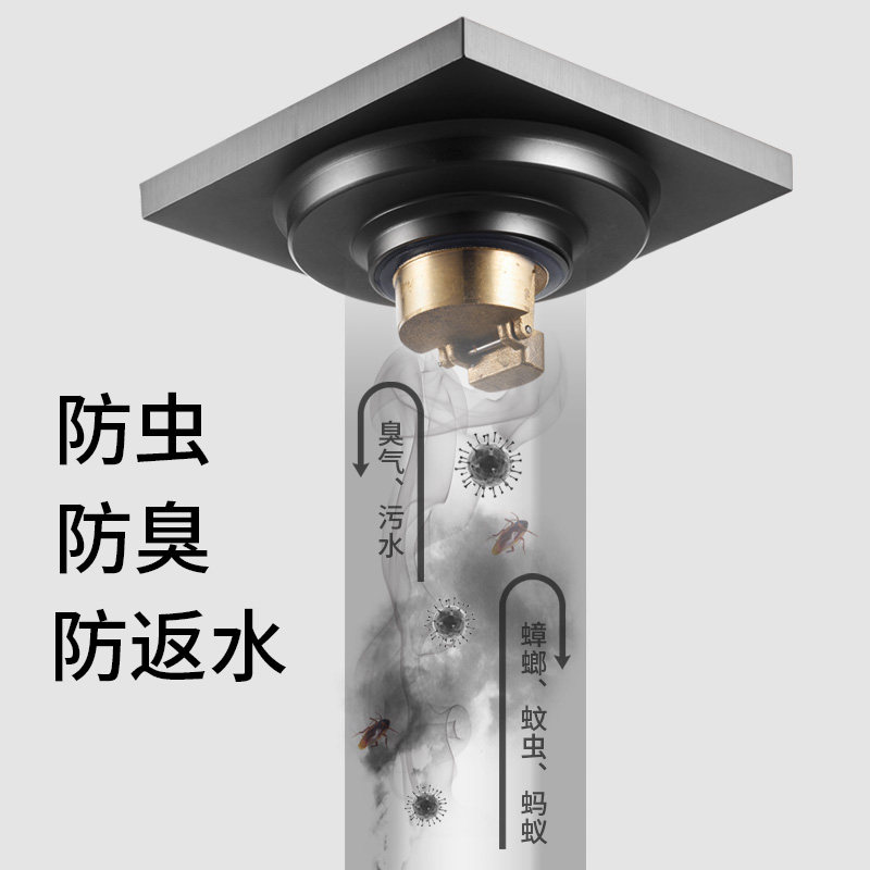 Full Copper Thickening Gun Grey Deodorant Floor Drain Invisible Themakeup Room Washing Machine Anti-Leaking Strip Inner Core Black