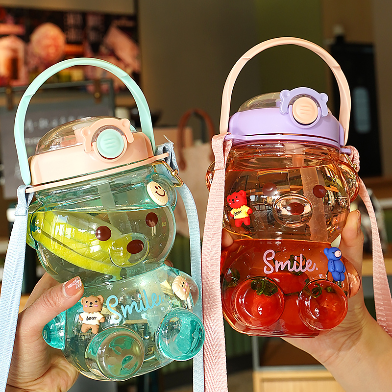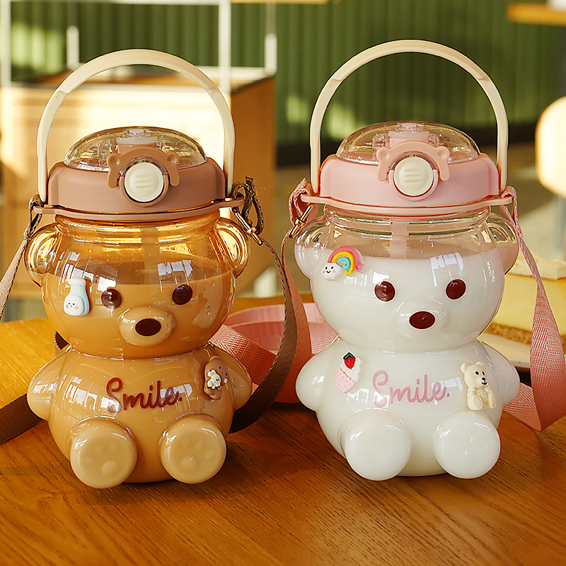 Cute Little Bear Water Glass Large Capacity Kettle Straw Cup Female High Face Value Children Portable Braces Plastic Cups Summer-Taobao