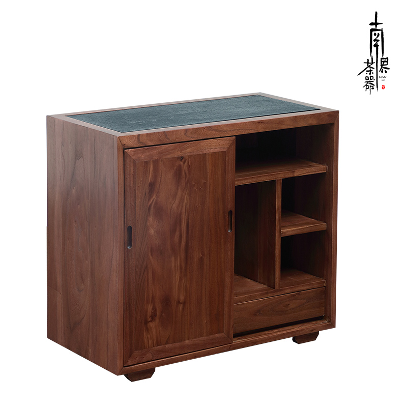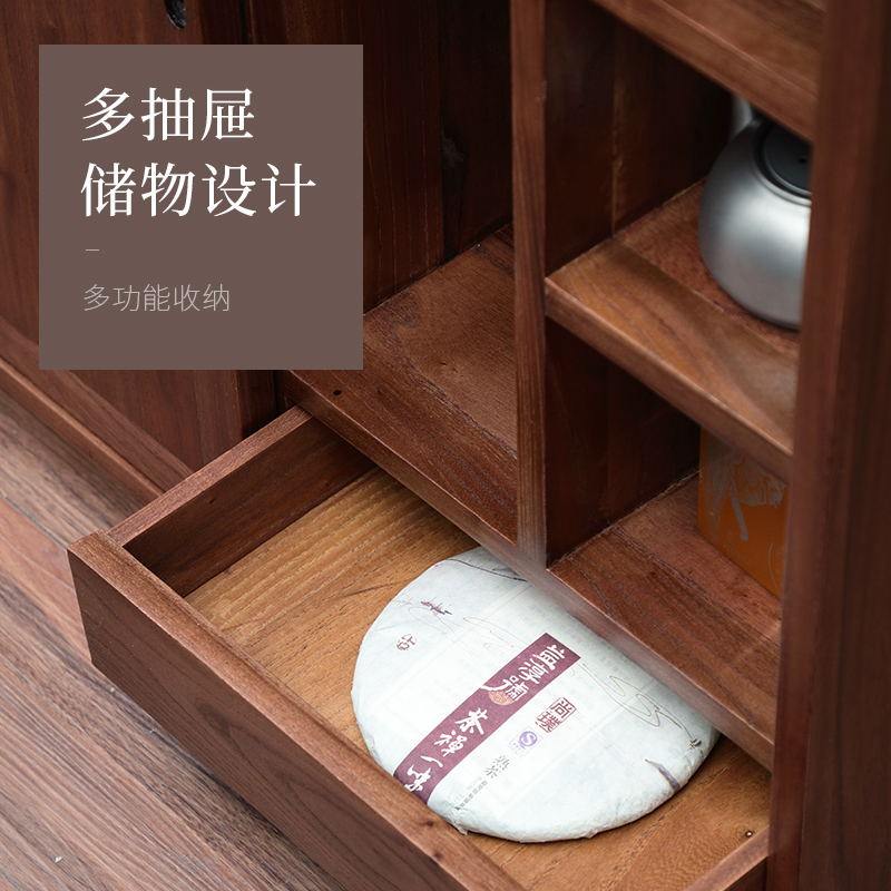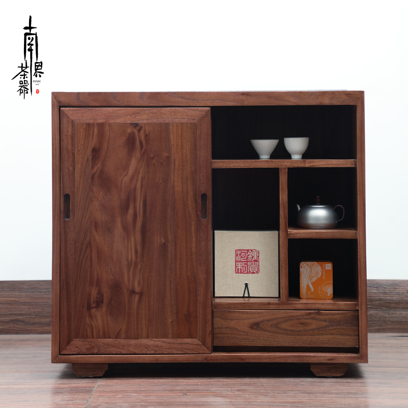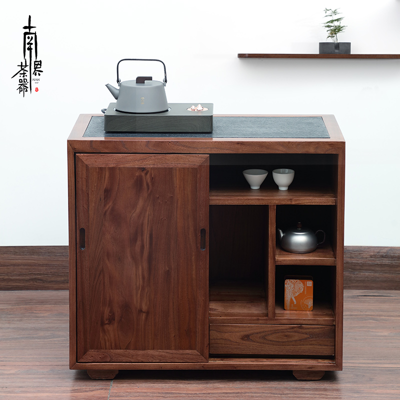 Solid wood tea water cabinet elm wood hut walnut color mobile tea cart Tea table New Chinese tea table edge cabinet induction stove integrated household