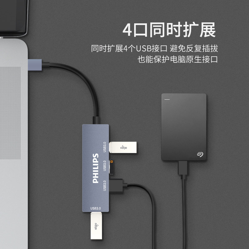 Philips USB Diverter 3 0 Convert Interface usb high-speed typec to HDMI SD Card Laptop PC Drag four-function USB Interface Extender Hub