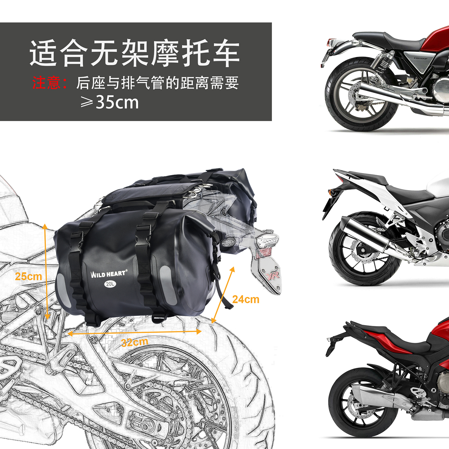 WILD HEART motorcycle side bag universal motorcycle electric vehicle hanging bag saddle side bag waterproof double pack