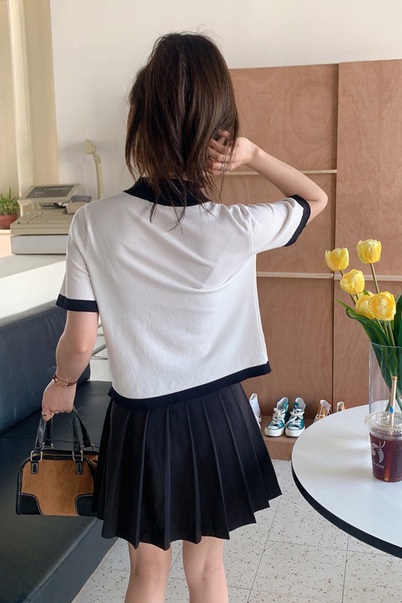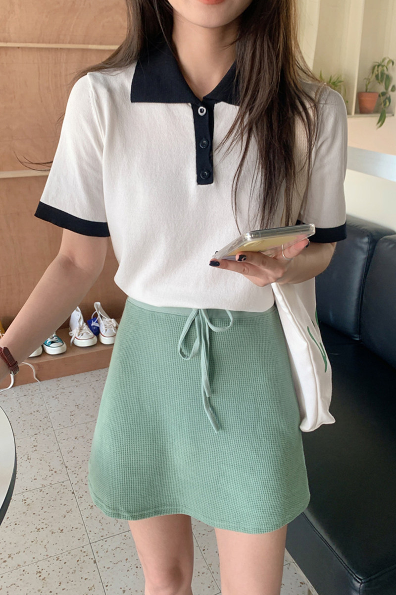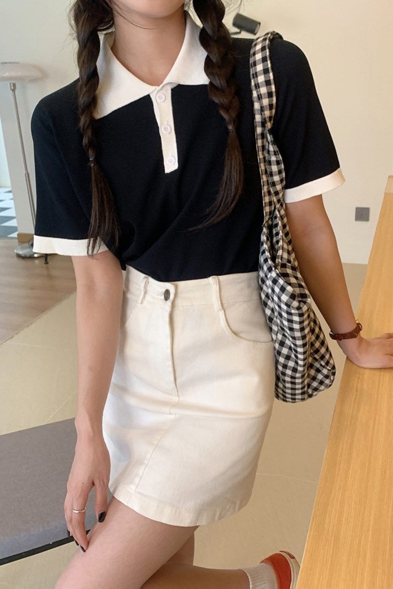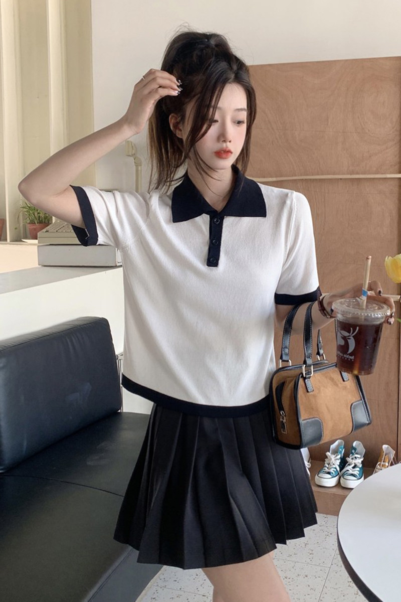 Summer polo collar ice-knitted sweatshirt short sleeve T-shirt woman thin section 100 lap reduction age Slim Design Sensation Short blouse