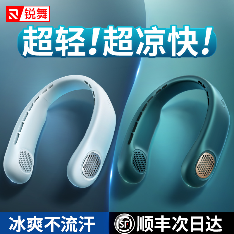 Rave hanging neck fan usb portable mini portable small charging mute lazy hanging neck hanging neck leafless refrigeration air conditioner outdoor student big wind power fan cooling artifact office