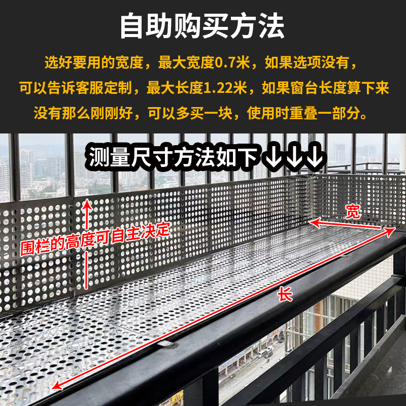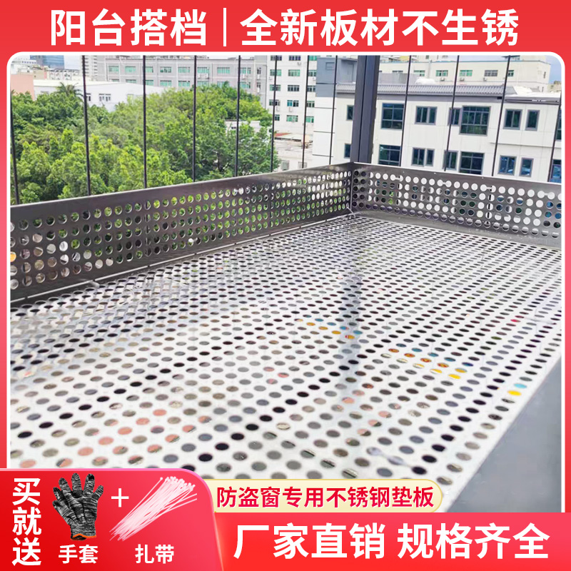 Anti-theft window pad 304 stainless steel punching plate anti-drain balcony protective net window sill flower rack guardrail storage board