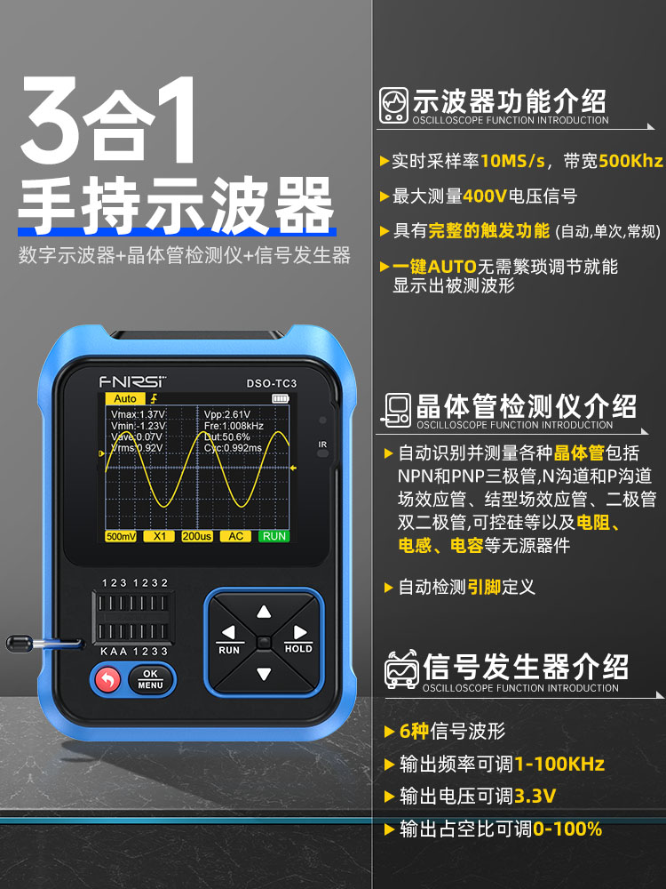 FNIRSI three-in-one multifunctional oscilloscope DSO-TC3 handheld small transistor detection signal generator-Taobao