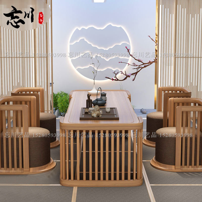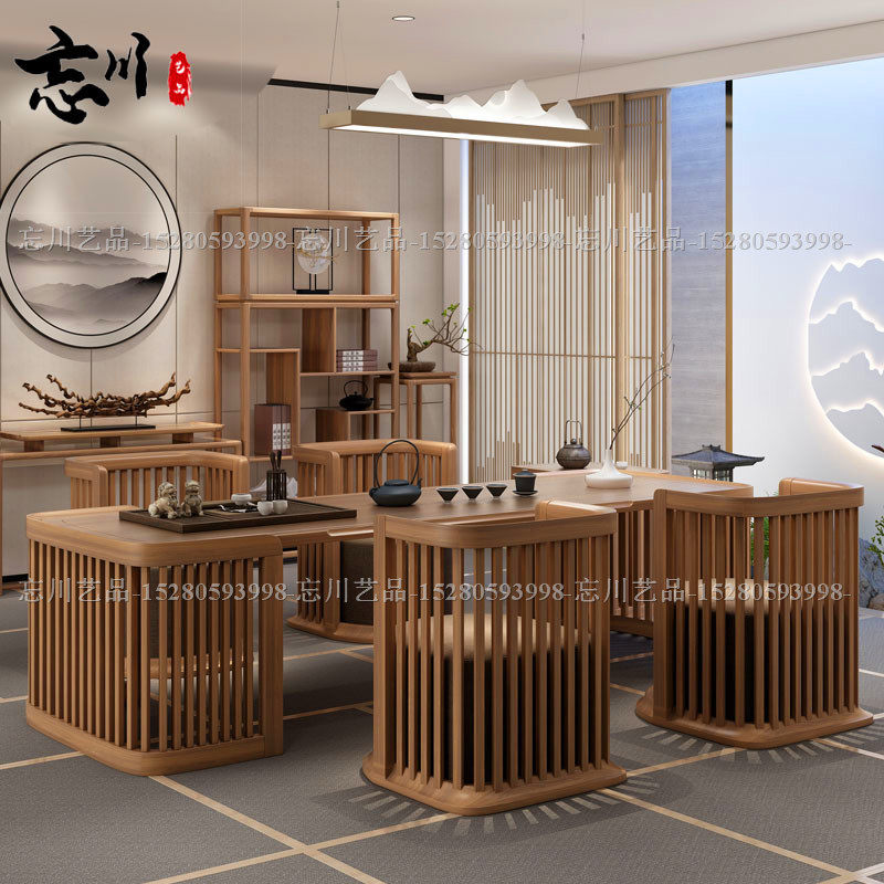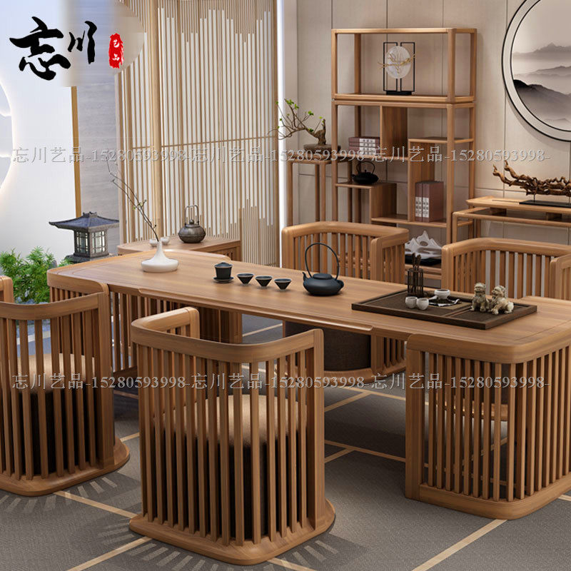 New Chinese style solid wood tea table and chair combination tea room office kung fu tea table set ebony wood tea table customization