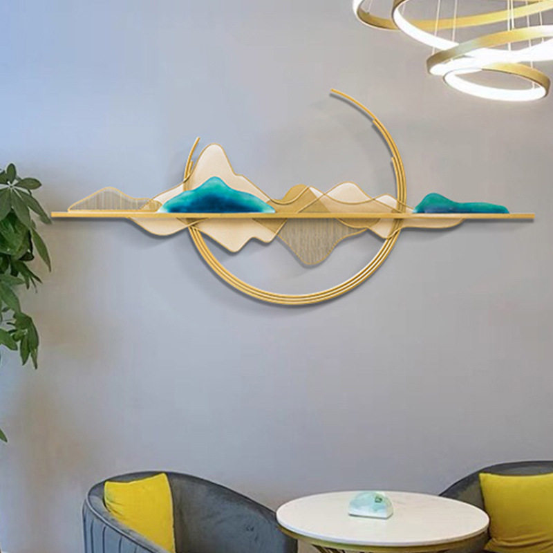 New Chinese Living Room Background Wall Wall Wall Wall Decoration Landscape Fresco Light Lavish Bedroom Restaurant Genguan Solid Iron Art Hanging-Taobao