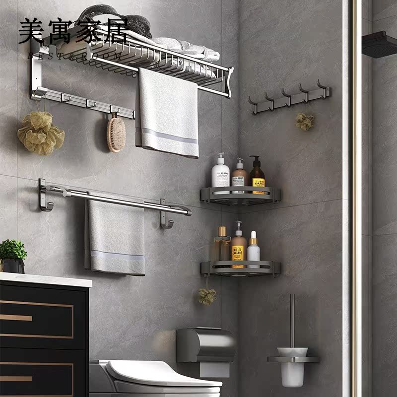 Gun grey towel rack-free punching room with wall hanging bathroom with bathroom basketball towel rack toilet hardware hanging