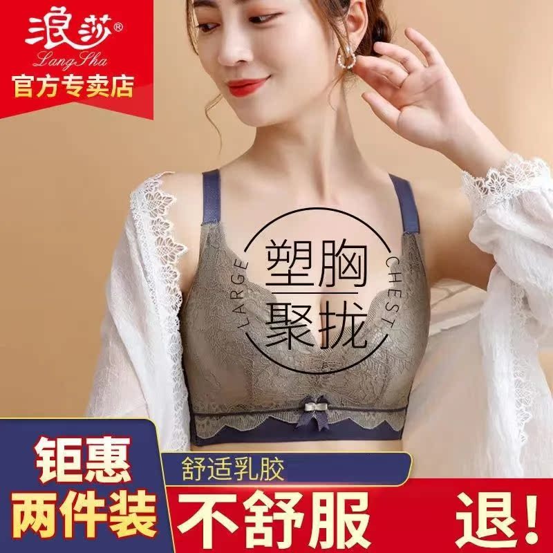 Langsha underwear women gather anti-sagging no steel ring thick and thin underwear set small breasts show big contrasting bras to receive auxiliary breasts