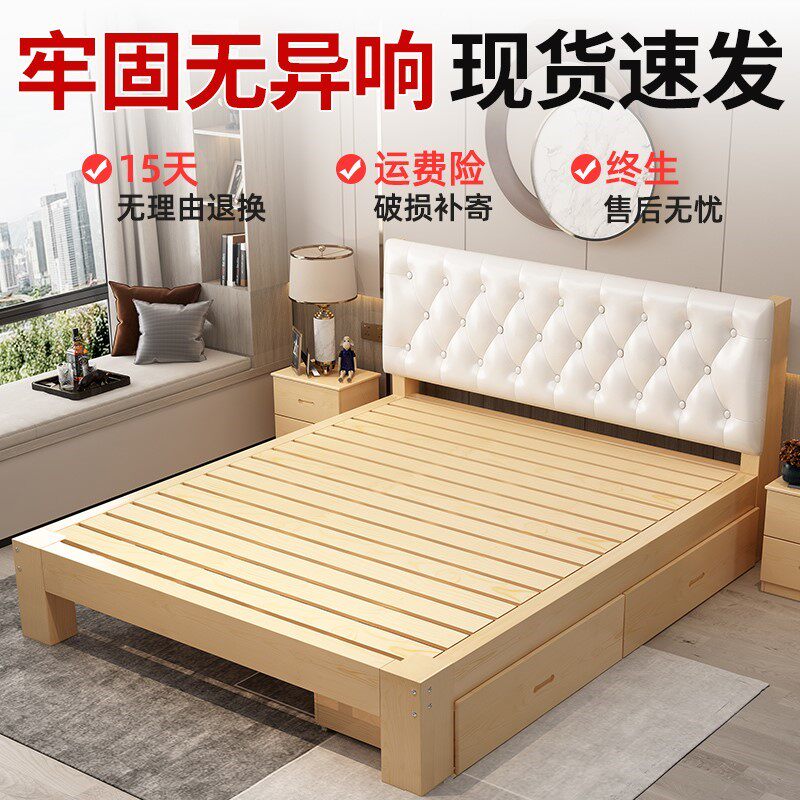 Upgraded soft pack solid wood bed 40cm double pump upgrade soft pack soft bag soft bag soft wood bed height 30cm mattress soft pack soft wood bed high 30cm