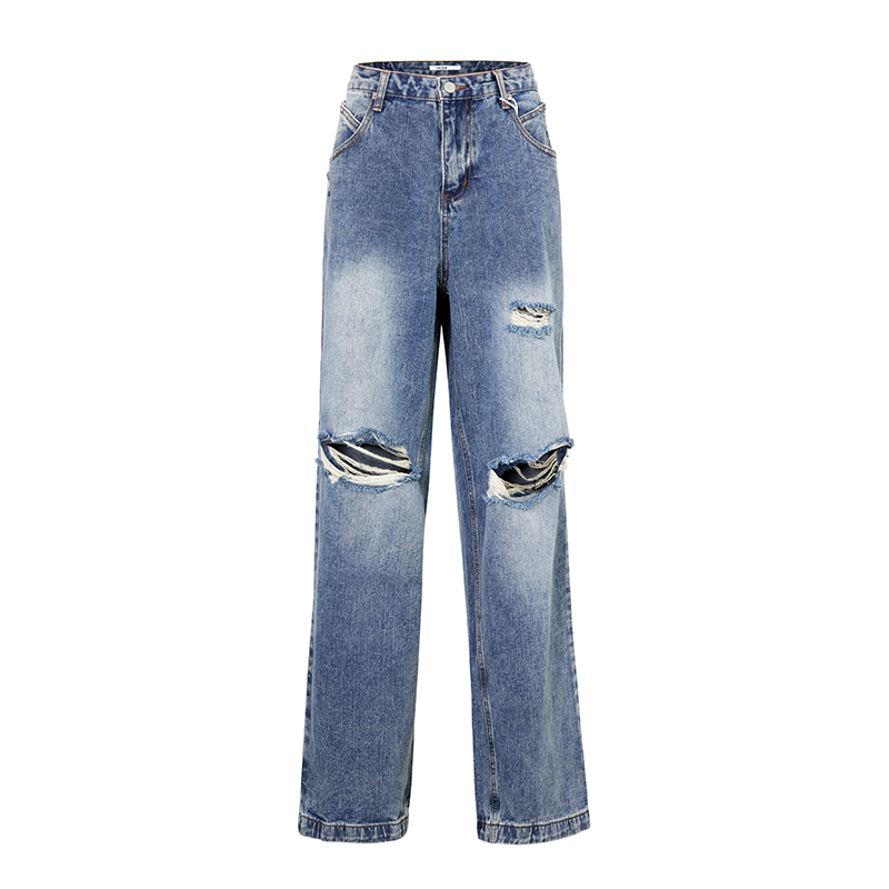 MADE NOTHING summer new original hot girl hole retro 2022 thin loose mopping jeans women
