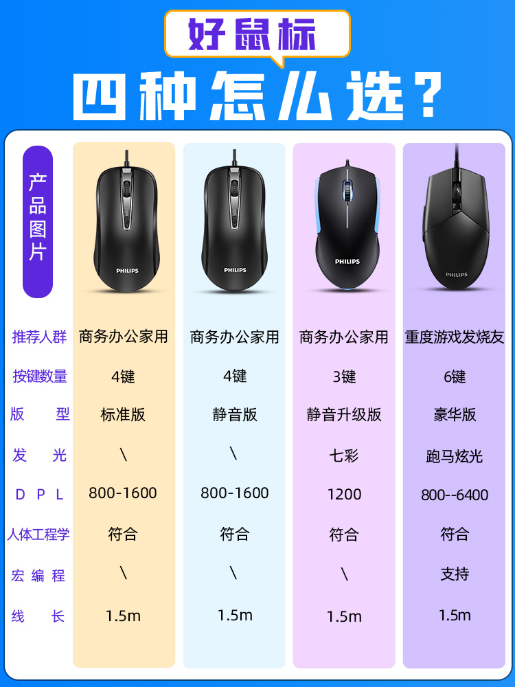 Philips mouse wired USB office notebook silent desktop computer for Huawei Apple Lenovo Hua