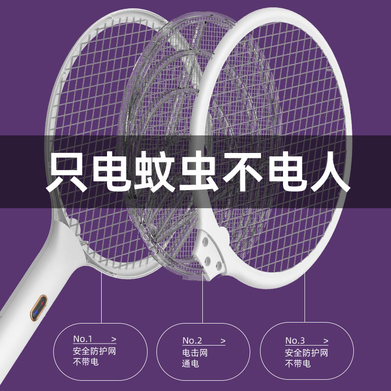 Electric mosquito swatter rechargeable home powerful mosquito killer lamp mosquito killer Lithium battery beats mosquitoes to make a net face