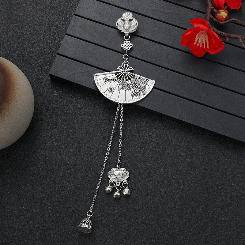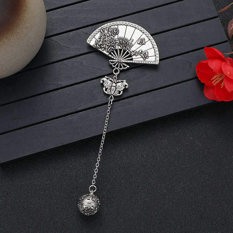 Chinese Retro Brochure Needle Flag Clothes Hangshire Wears Silver Pizza Fan Bell Flow Surface Accessories
