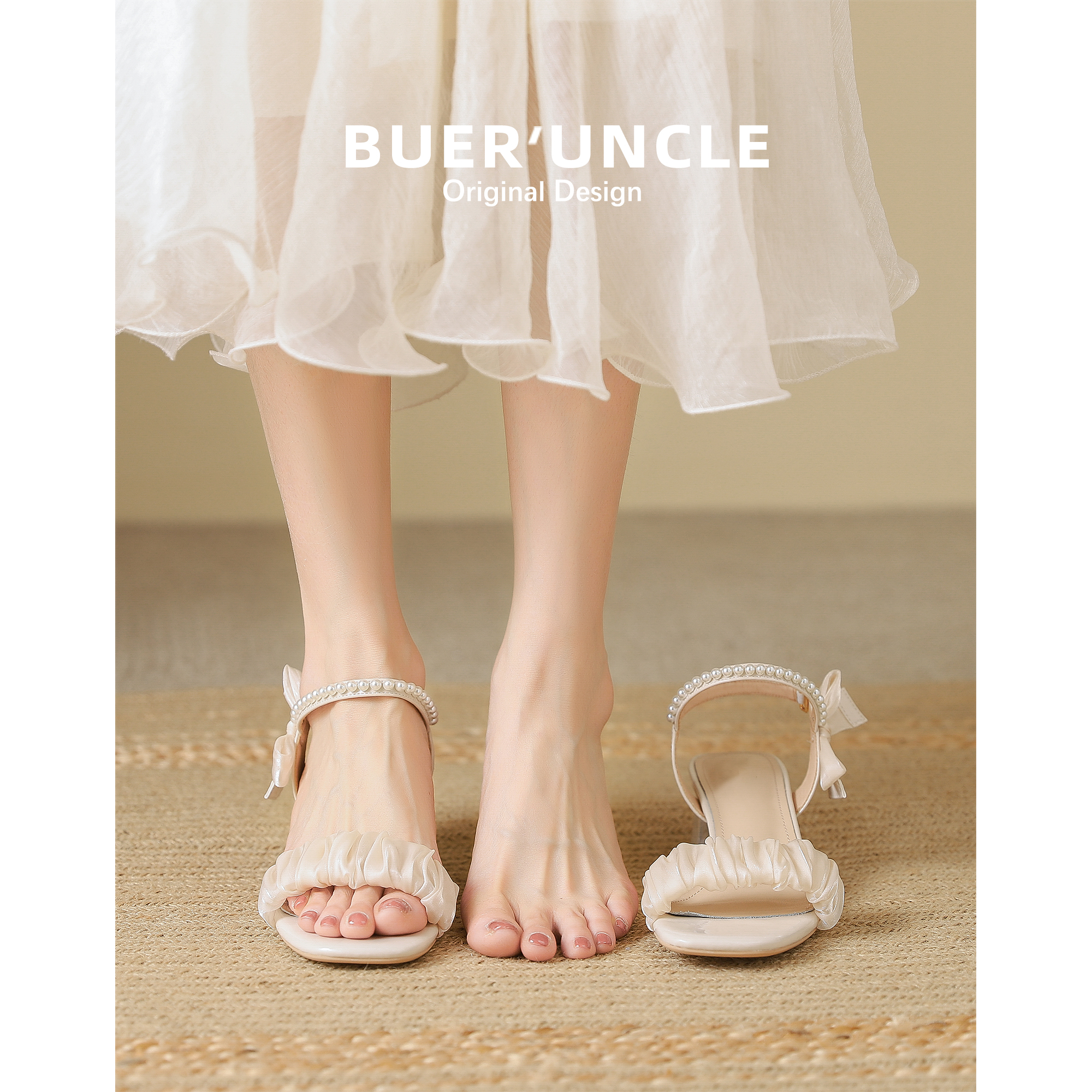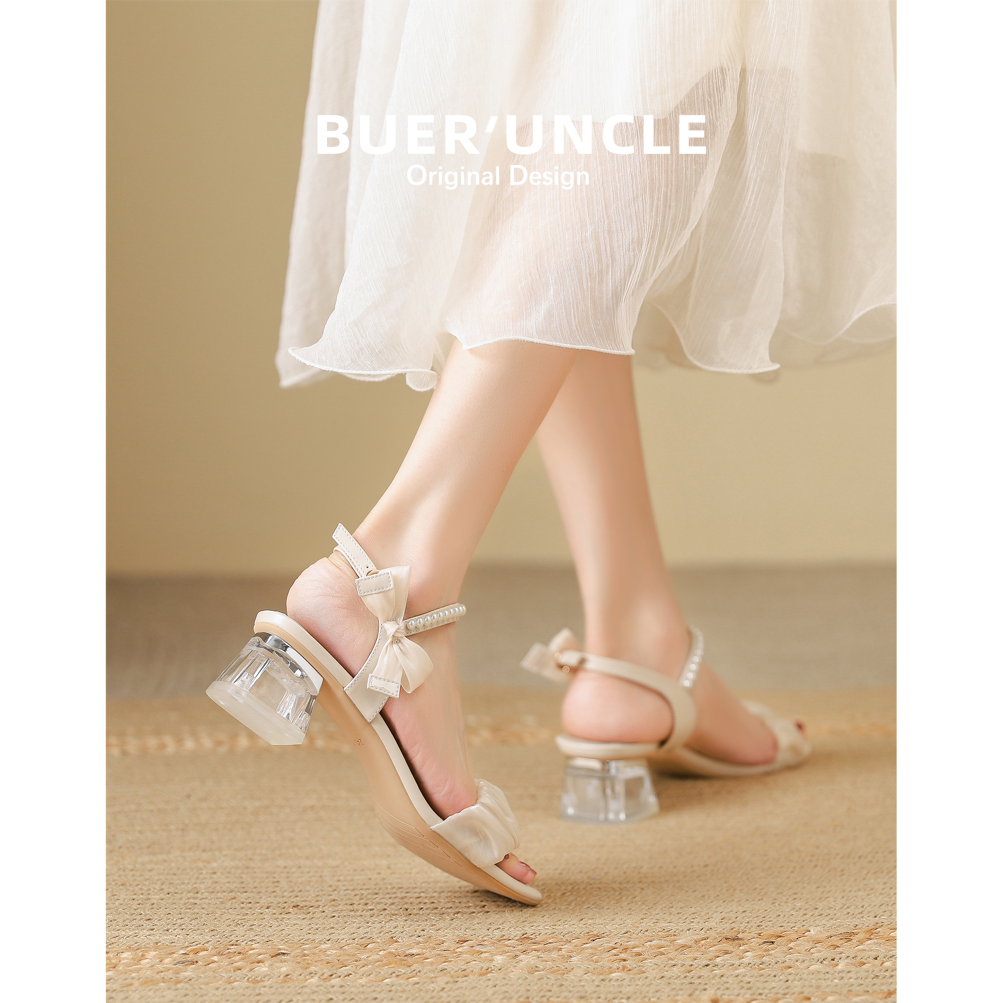 Sandals women's summer outwear ins fairy style 2022 new pearl transparent block heel high heels with skirt