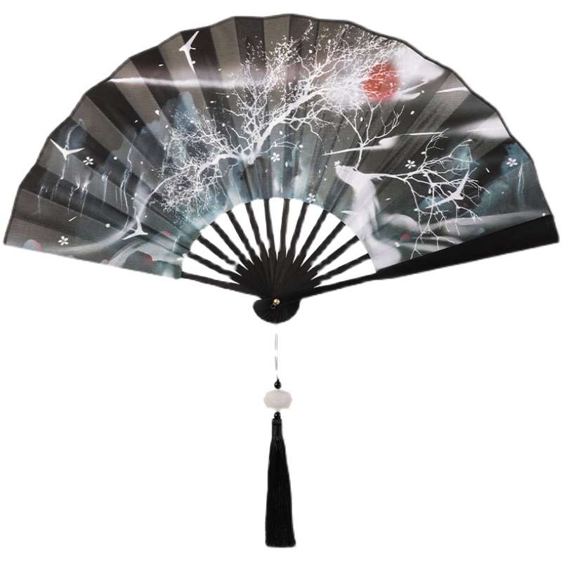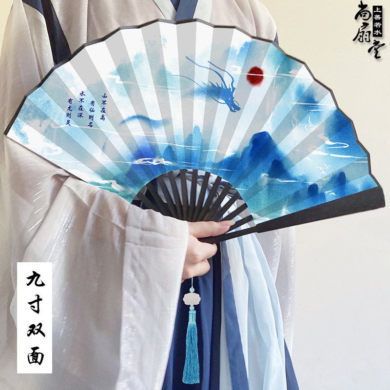 Ancient fan folding fan boy Chinese wind dragon student domineering black folding fan 30cm double-sided summer bamboo fan