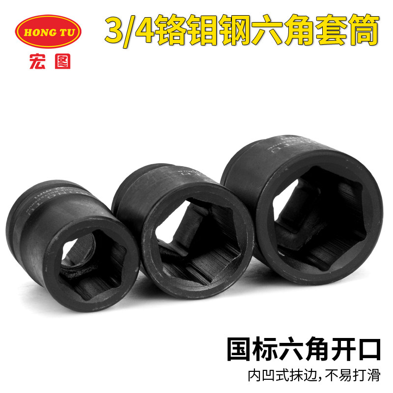 Hongtu 3 4 standard short pneumatic socket medium heavy duty pneumatic wrench socket 36 hexagonal tire socket wrench 30mm
