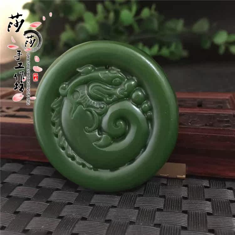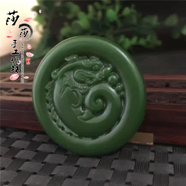 High imitation jade imitation ancient dragon pendant male and female necklace jade dragon pendant with green clasp imitation ancient dragon birth Xiao Long Yupei