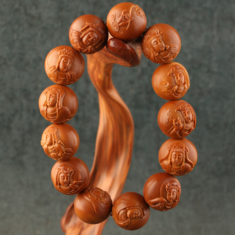 1 8x1 8cm Zhengyuan (Guanyin) Chen Dream Works Olive Olive Nuclear Sculpture Triple Flower Old Oil Core Positive Round Hand Strings