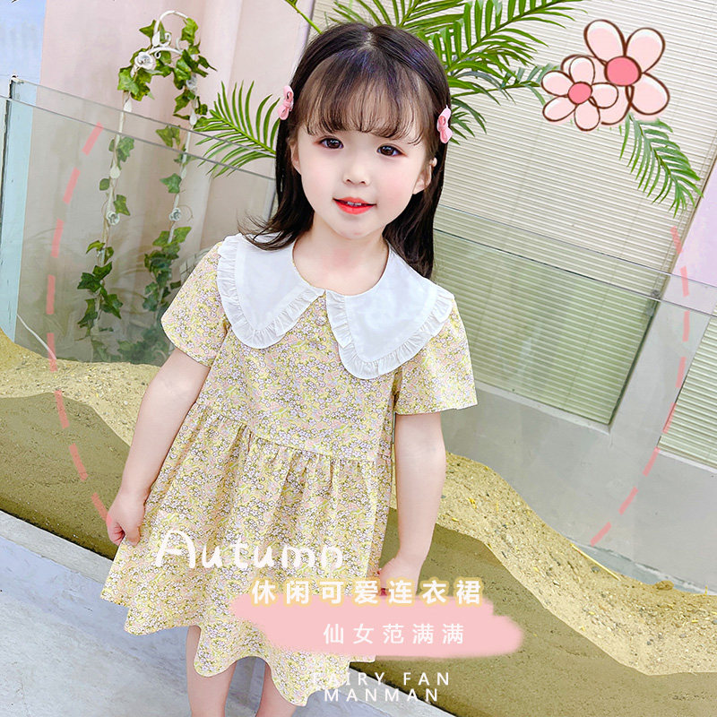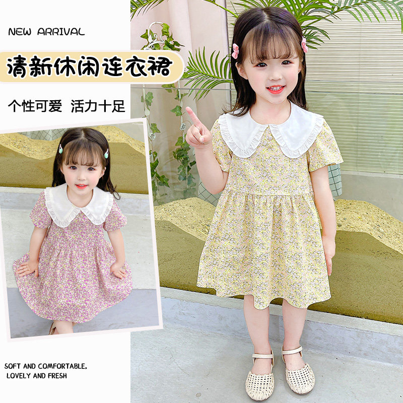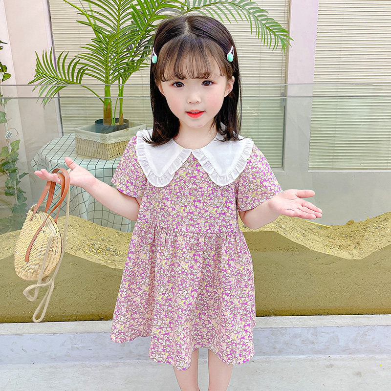 2022 summer new girls' skirts children's pure cotton small floral dress summer clothes children's baby literature and art