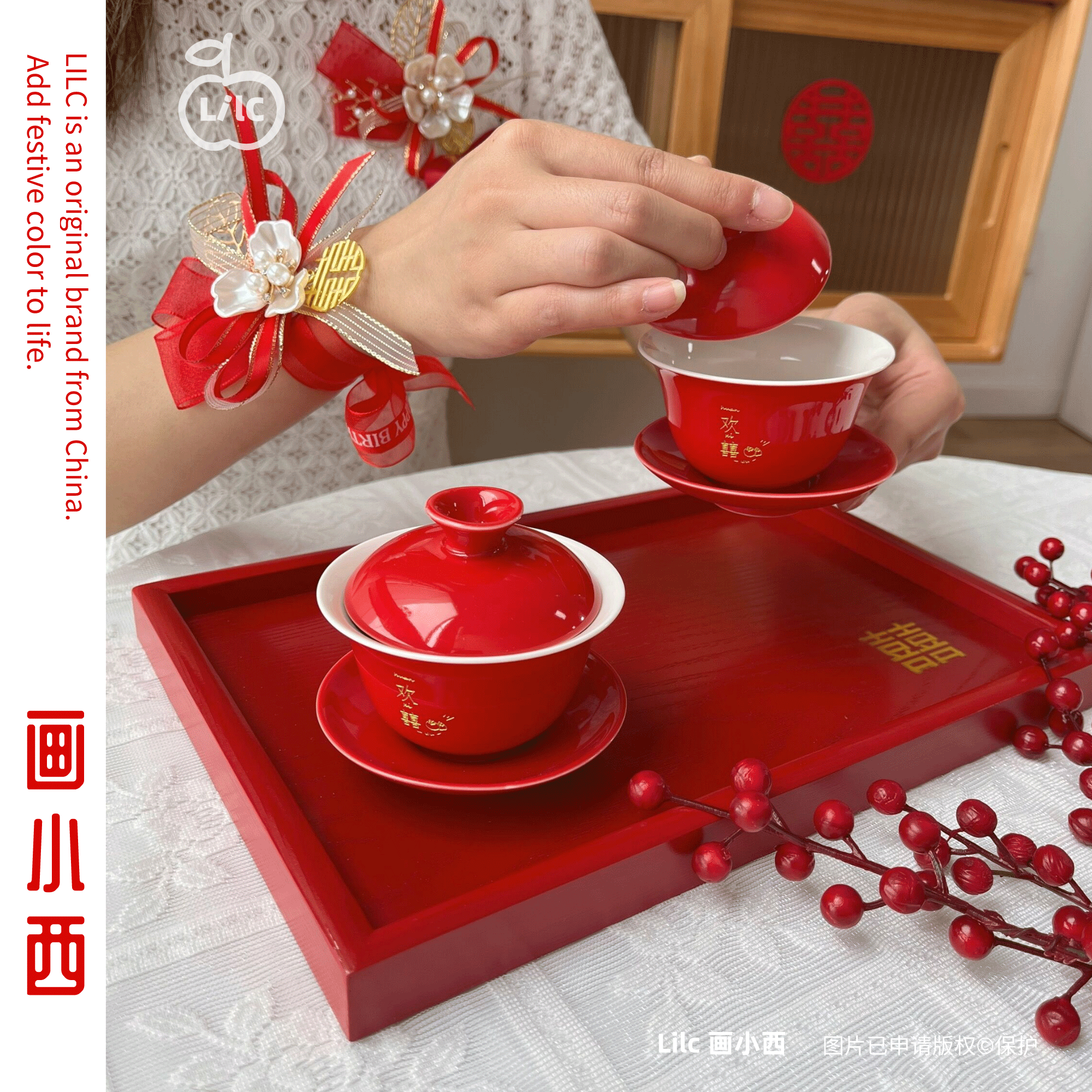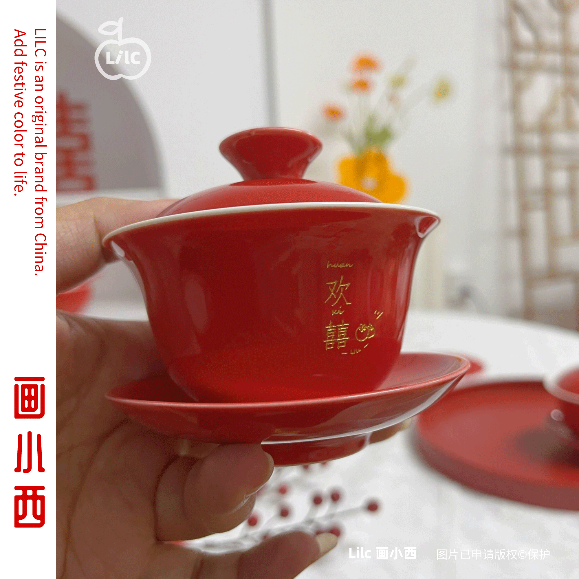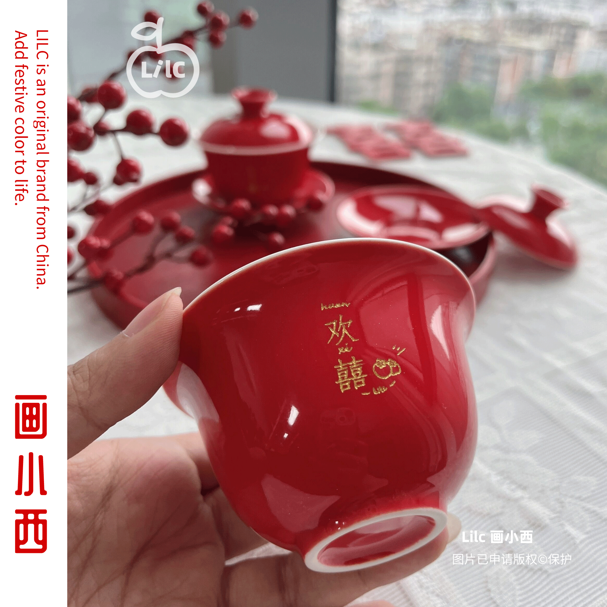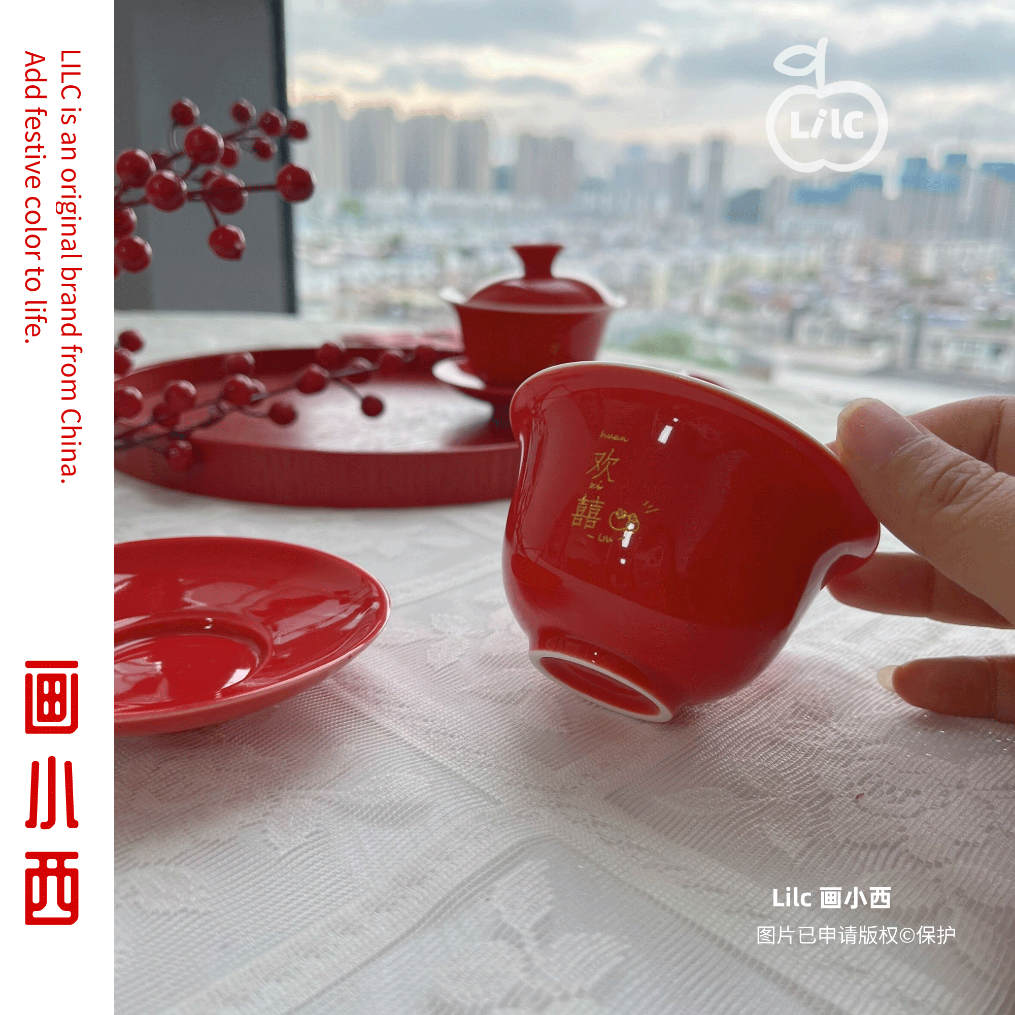 lilc home original wedding ceramic cover bowl toast teacup Douyin Xiaohongshu hot money wine Chinese red dowry