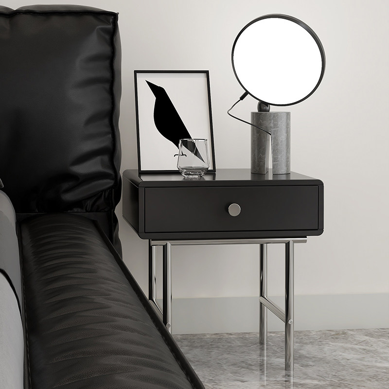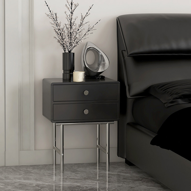 Bauhaus style bedside cabinet simple modern bedroom small household stainless steel designer black bedside small cabinet