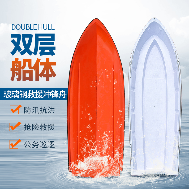 Double-layer fiberglass flood control assault boat speedboat sea fishing boat net boat fishing boat emergency rescue rescue high-speed boat