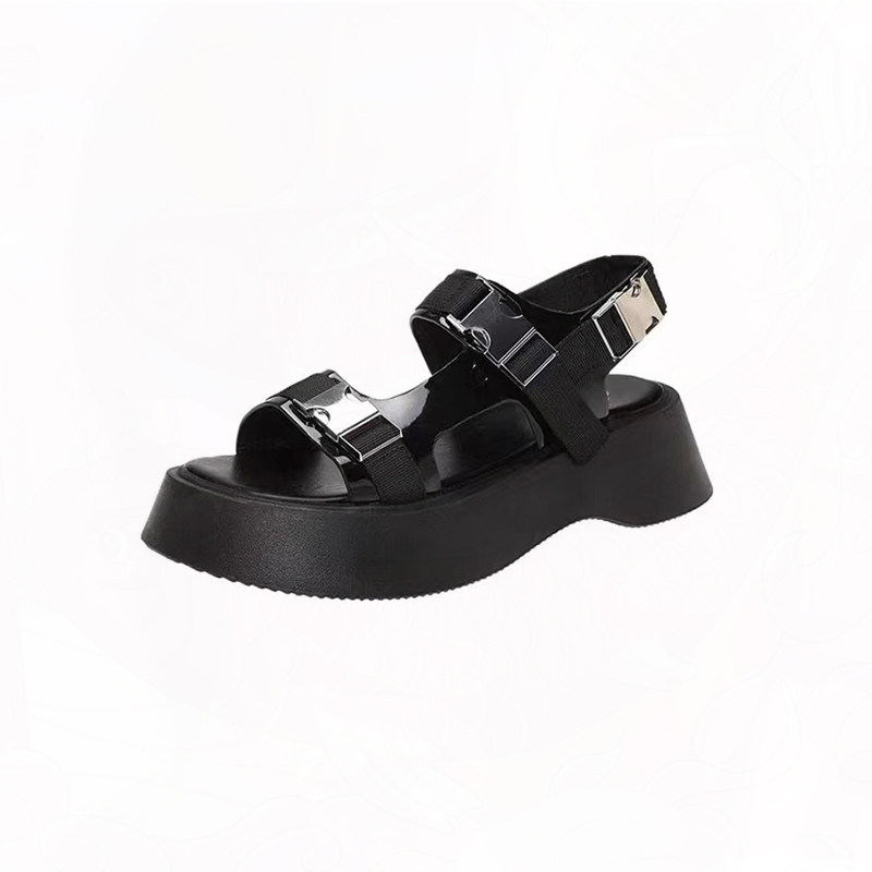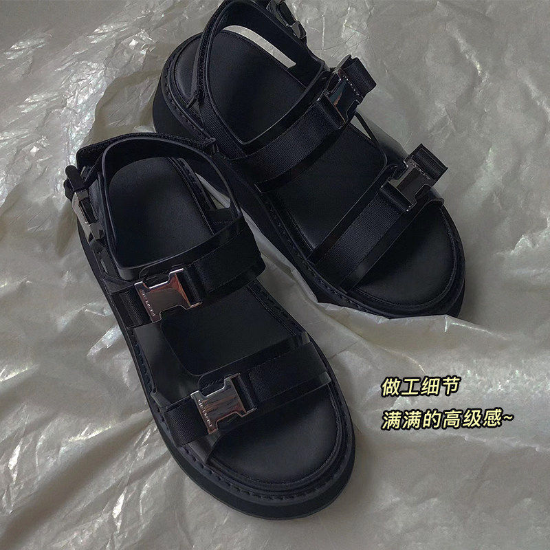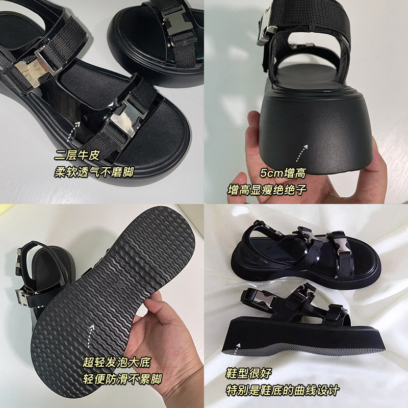 2022 Summer new pine thick - sole sandals female network red increased and thin leisure and superior cool black
