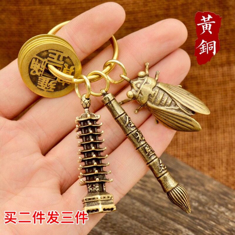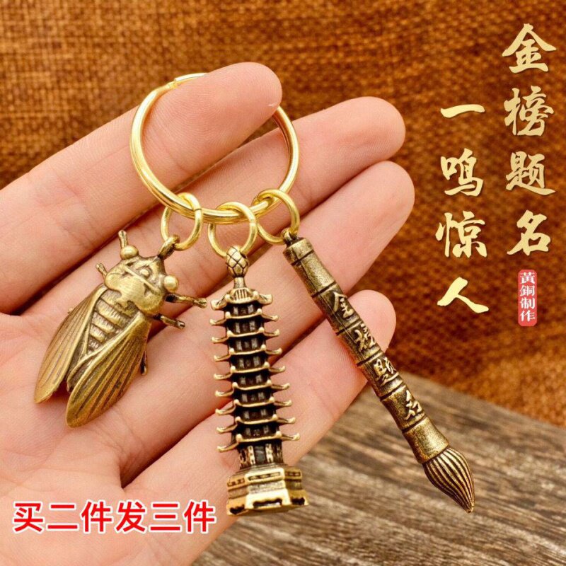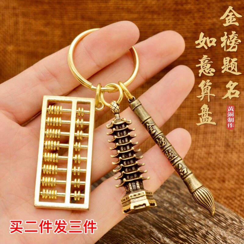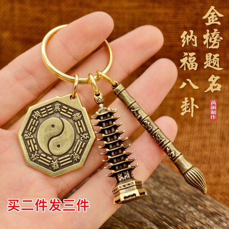 Students high school entrance examination college entrance examination refueling gift 13-story Wenchang Tower and pen brass keychain inspirational gift men and women pendant