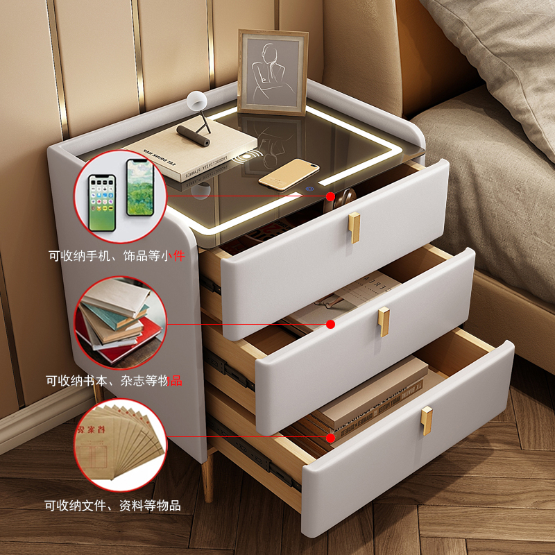 Smart bedside cabinet large capacity wireless charging multi-function solid wood storage simple modern bedroom bedside storage cabinet