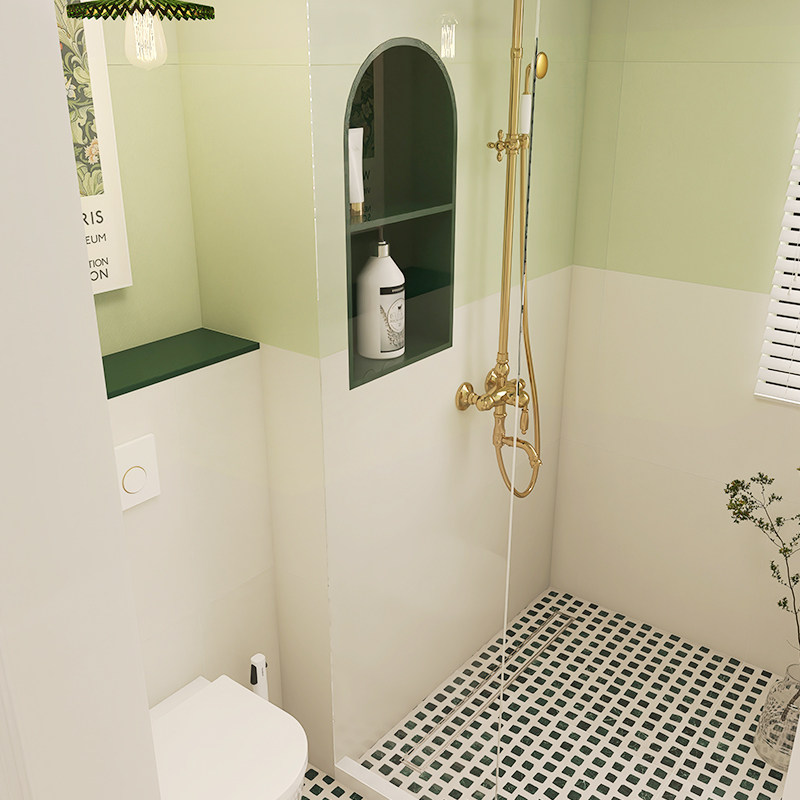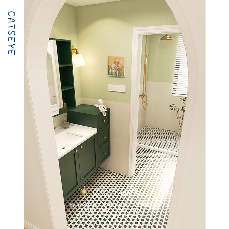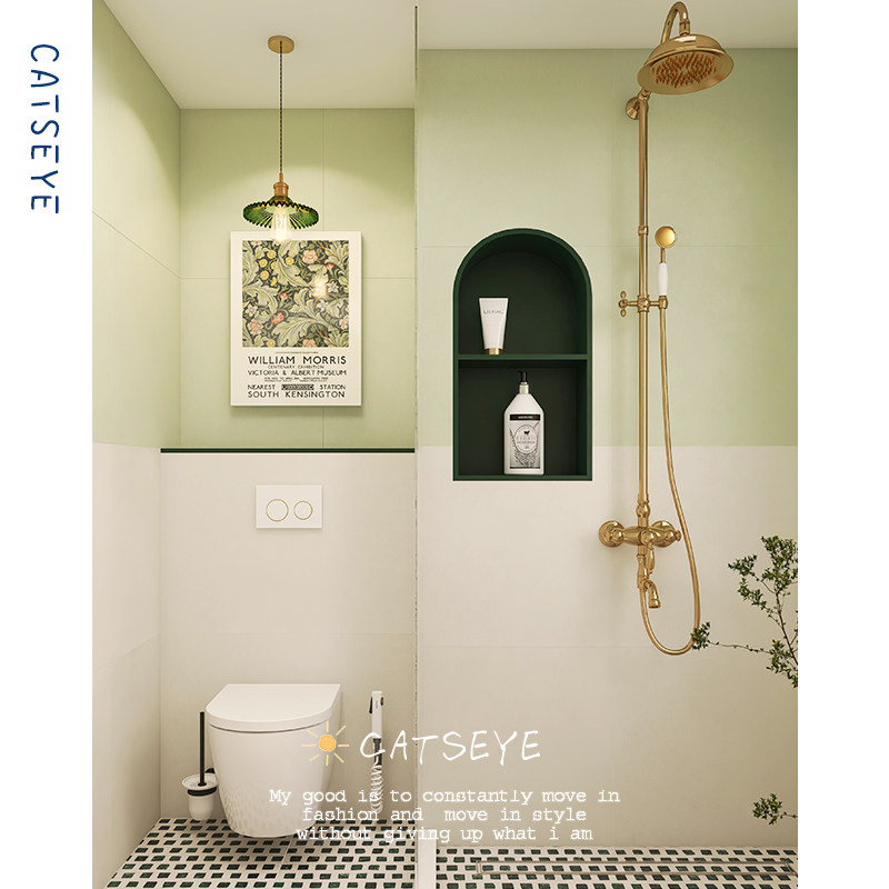 Cat's eye avocado green bathroom micro-cement tiles retro bathroom toilet wall tiles kitchen terrazzo floor tiles