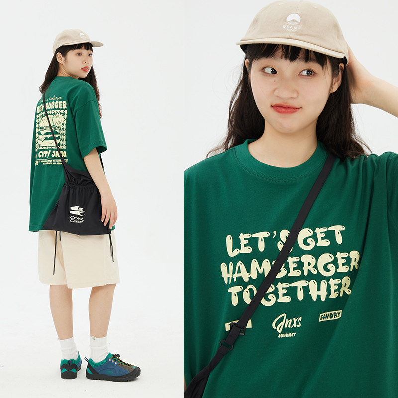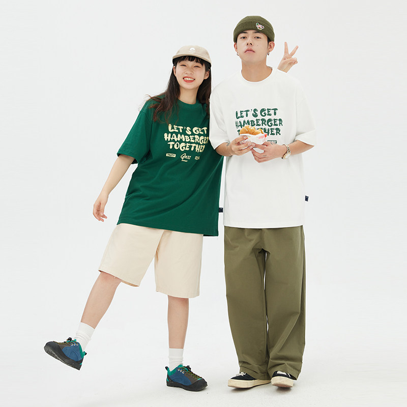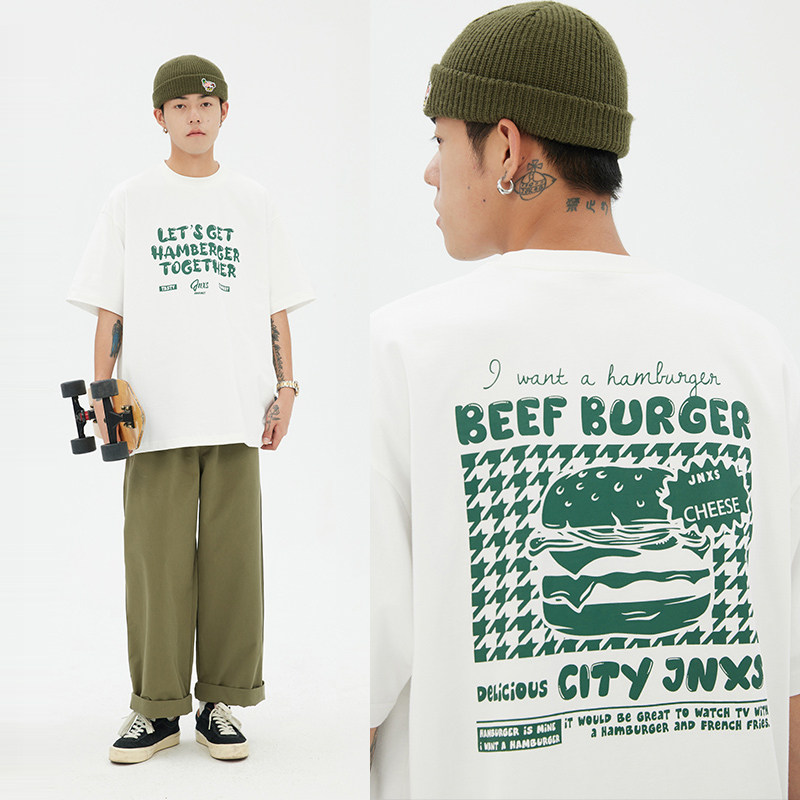 Mr. JNXS Jiangnan CityBoy Japanese Hamburg print couple short-sleeved T-shirt men's summer tide brand loose half-sleeved