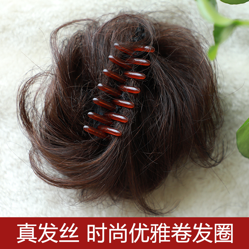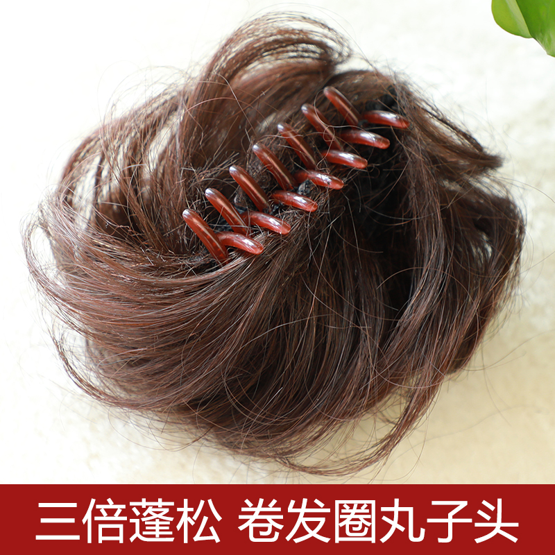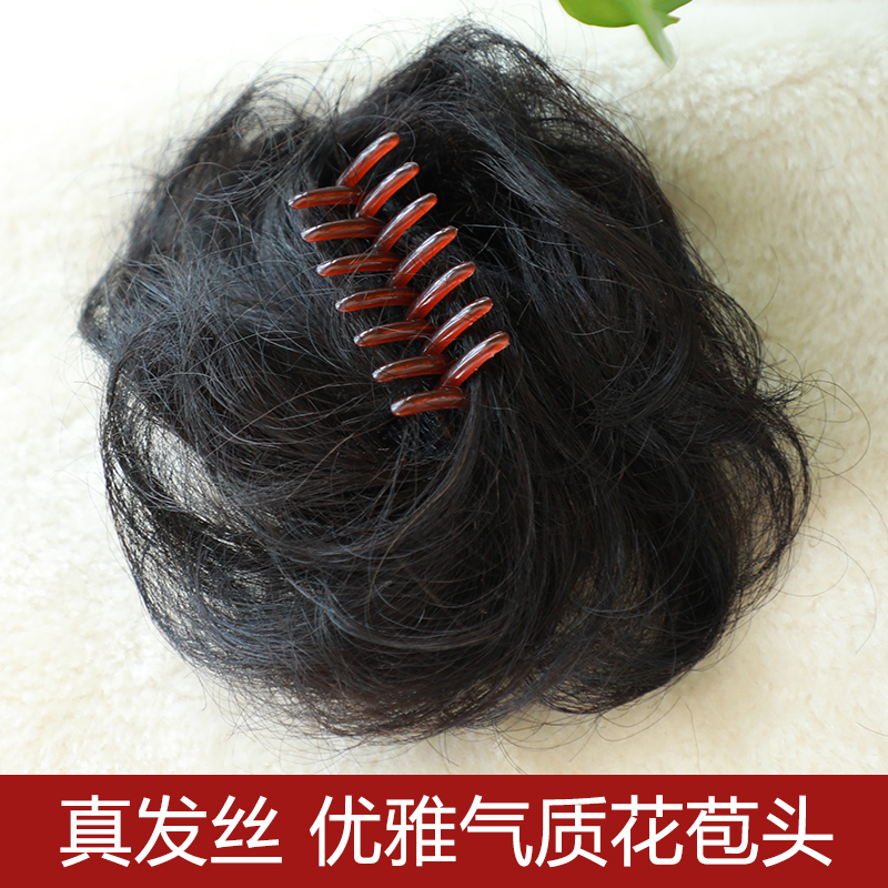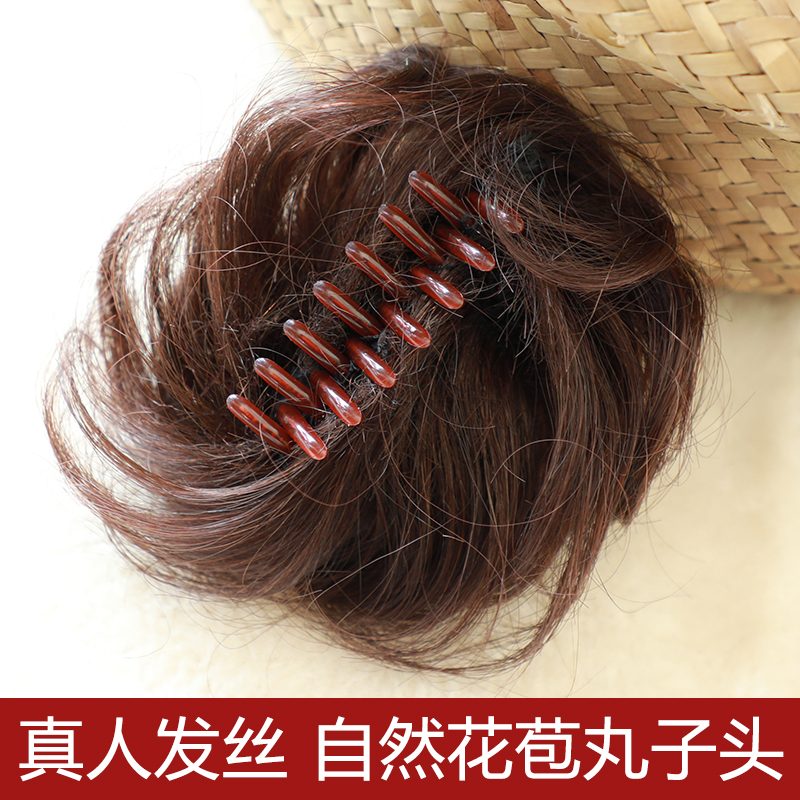 Real hair grab clip ball head flower bud full real hair grab clip hair bag natural messy ball head wig female