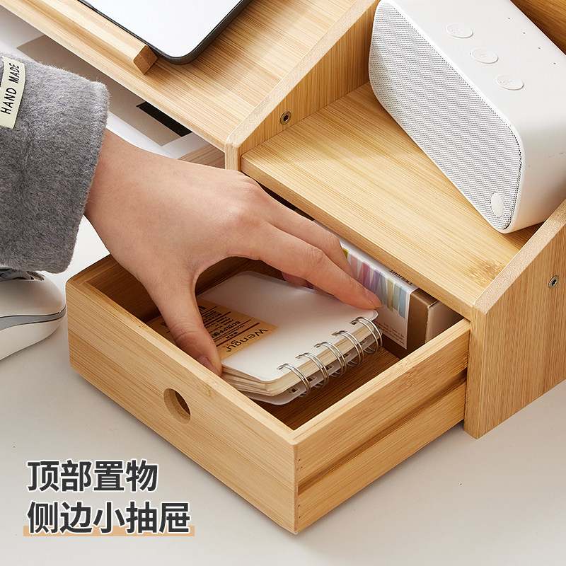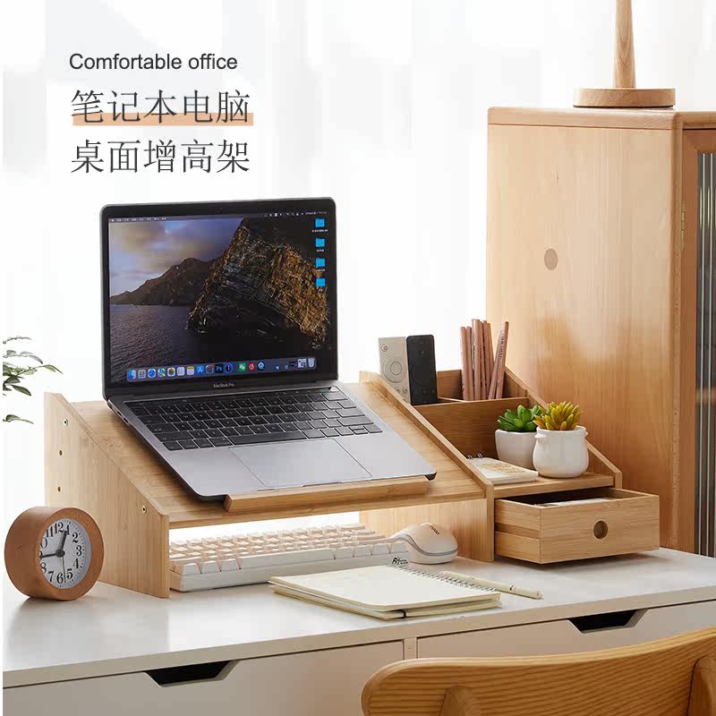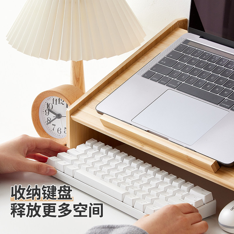 Notebook elevated rack adjustable bamboo solid wood keyboard monitor bracket computer desk surface storage base