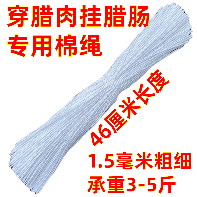 Food-grade hanging sausage special line rope tied with sausage bacon white hemp cotton rope tied with loops and buckles with sausages knotted