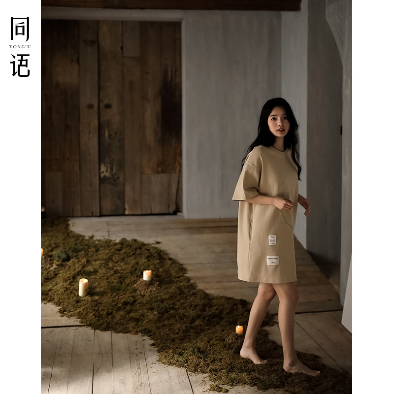 Same language 2023 New sleeping dress lady Summer pure cotton short sleeve thin family clothes ladies' pyjamas ladies can wear midskirt-Taobao