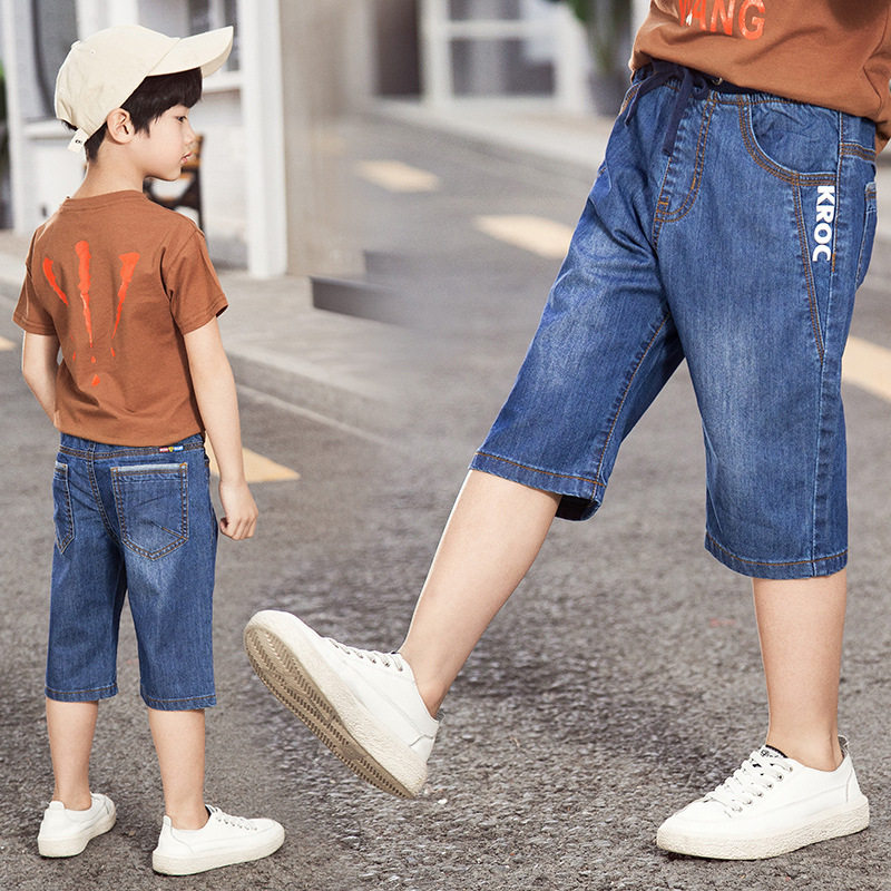 Bala children boys and girls middle and big children soft denim short summer thin section Western style five-point pants casual Korean version of the five-point pants tide
