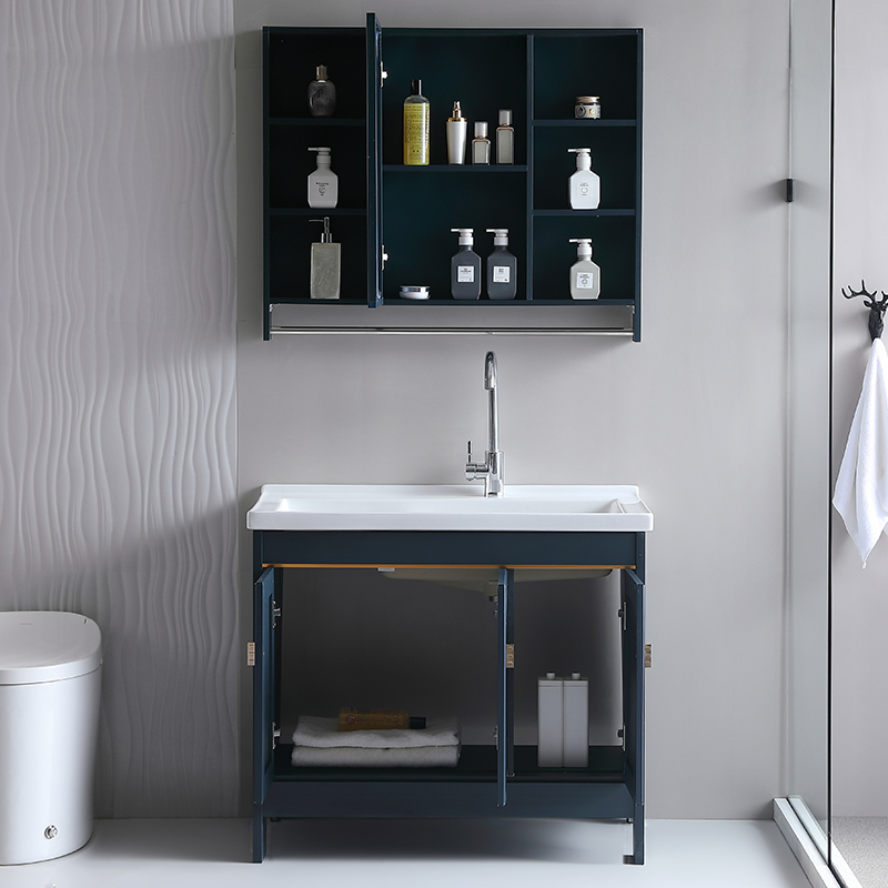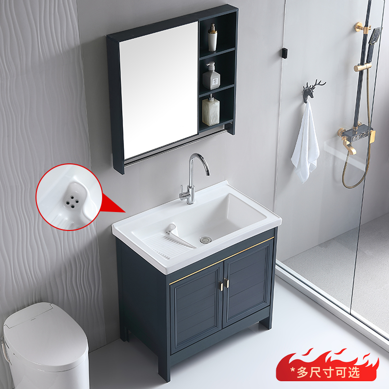Space aluminum laundry cabinet ceramic basin laundry pool balcony laundry trough bathroom floor cabinet outdoor hand washing integrated basin