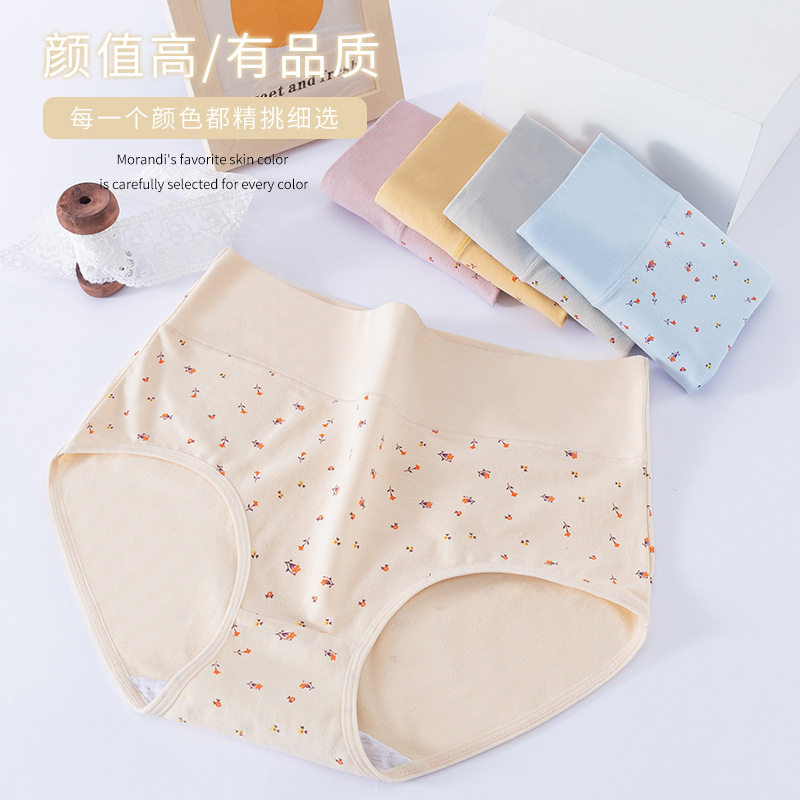 High waist underwear girl pure cotton belly lady with hips cover belly button navel old mother underpants breathable