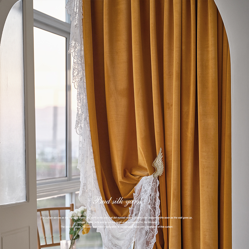 French Light Luxury Velvet Curtain Living Room Balcony Bleaded CurtainsFlavoring Dressed Flower Curtain