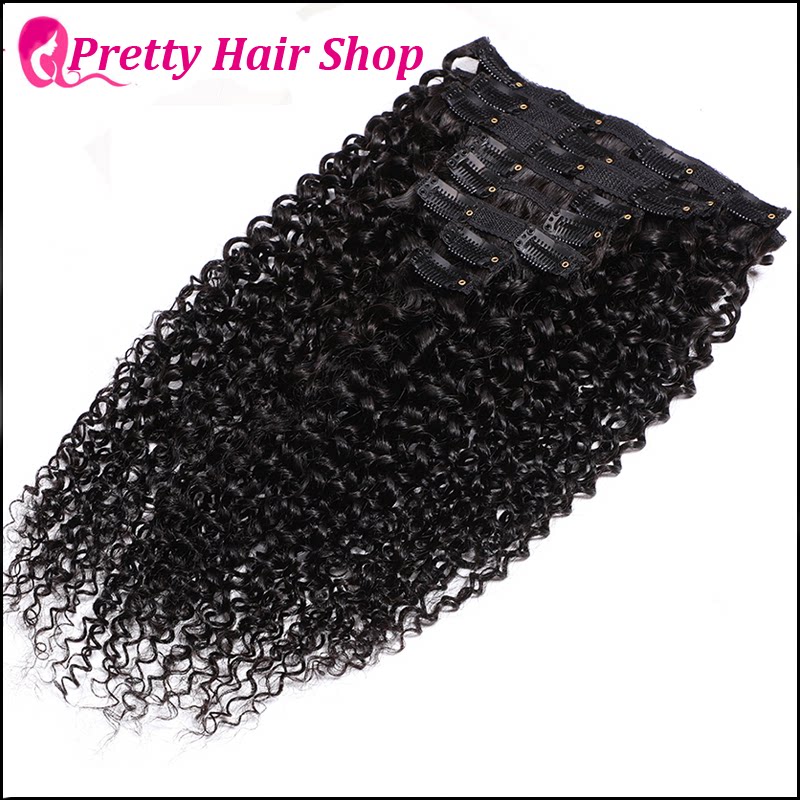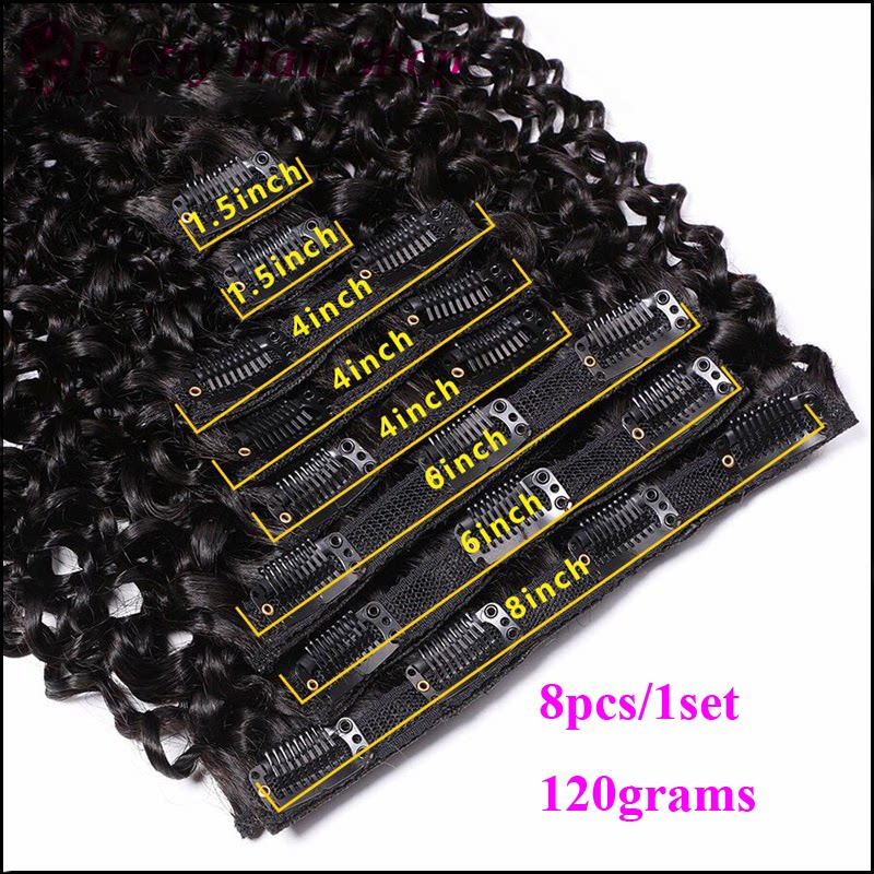 120g 100% Natural Kinky Curly Clip in Human Hair Extensions